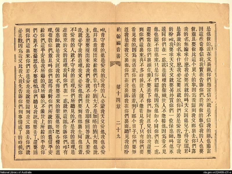 1868年新约约翰福音 约翰福音 14 章 11 节到 14 章 29 节