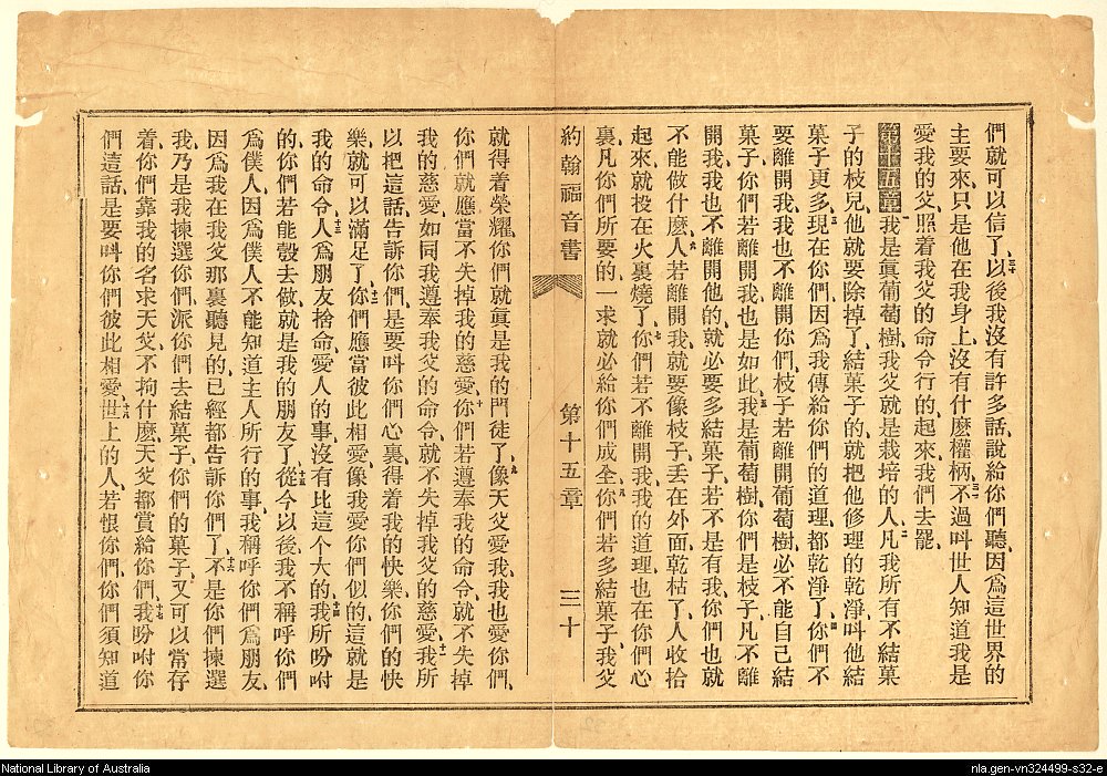 1868年新约约翰福音 约翰福音 14 章 30 节到 15 章 18 节