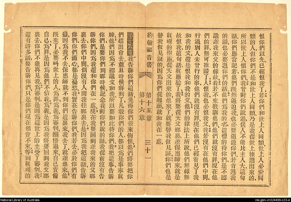 1868年新约约翰福音 约翰福音 15 章 19 节到 16 章 13 节