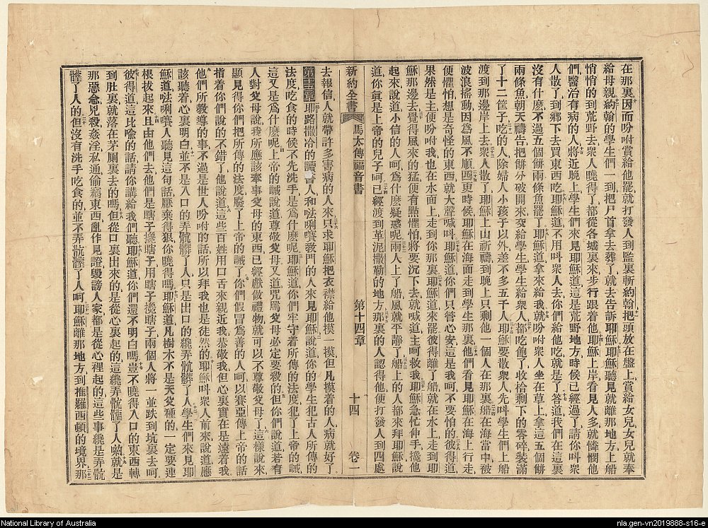 1856年新约四福音使徒行传(南京官话译本) 马太福音 14 章 10 节到 15 章 22 节