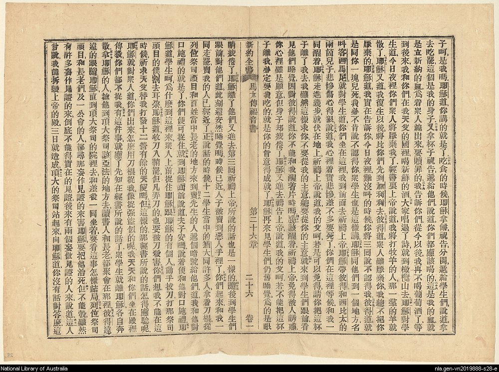 1856年新约四福音使徒行传(南京官话译本) 马太福音 26 章 26 节到 26 章 62 节