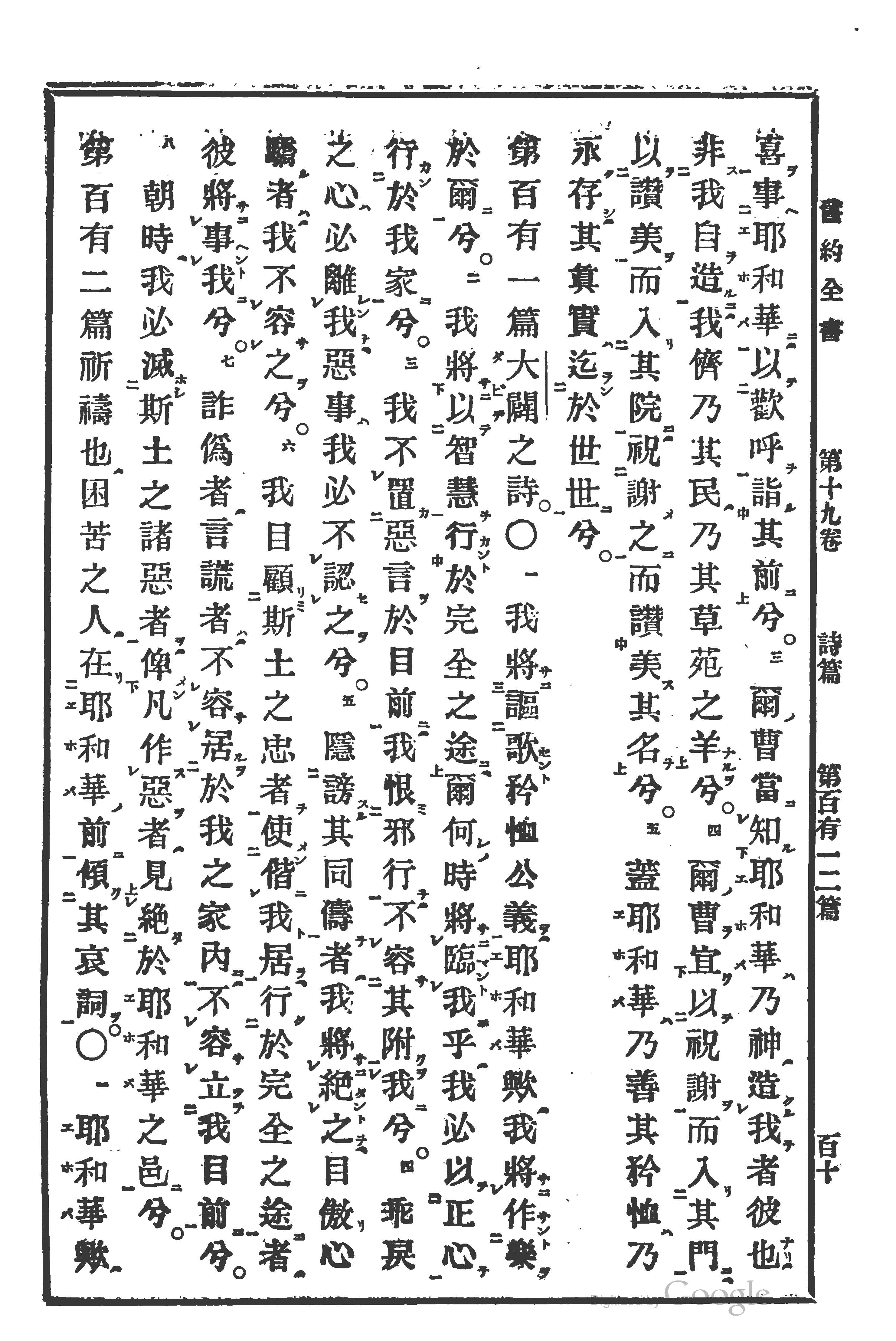 1880年训典诗篇 诗篇 100 章 3 节到 102 章 1 节