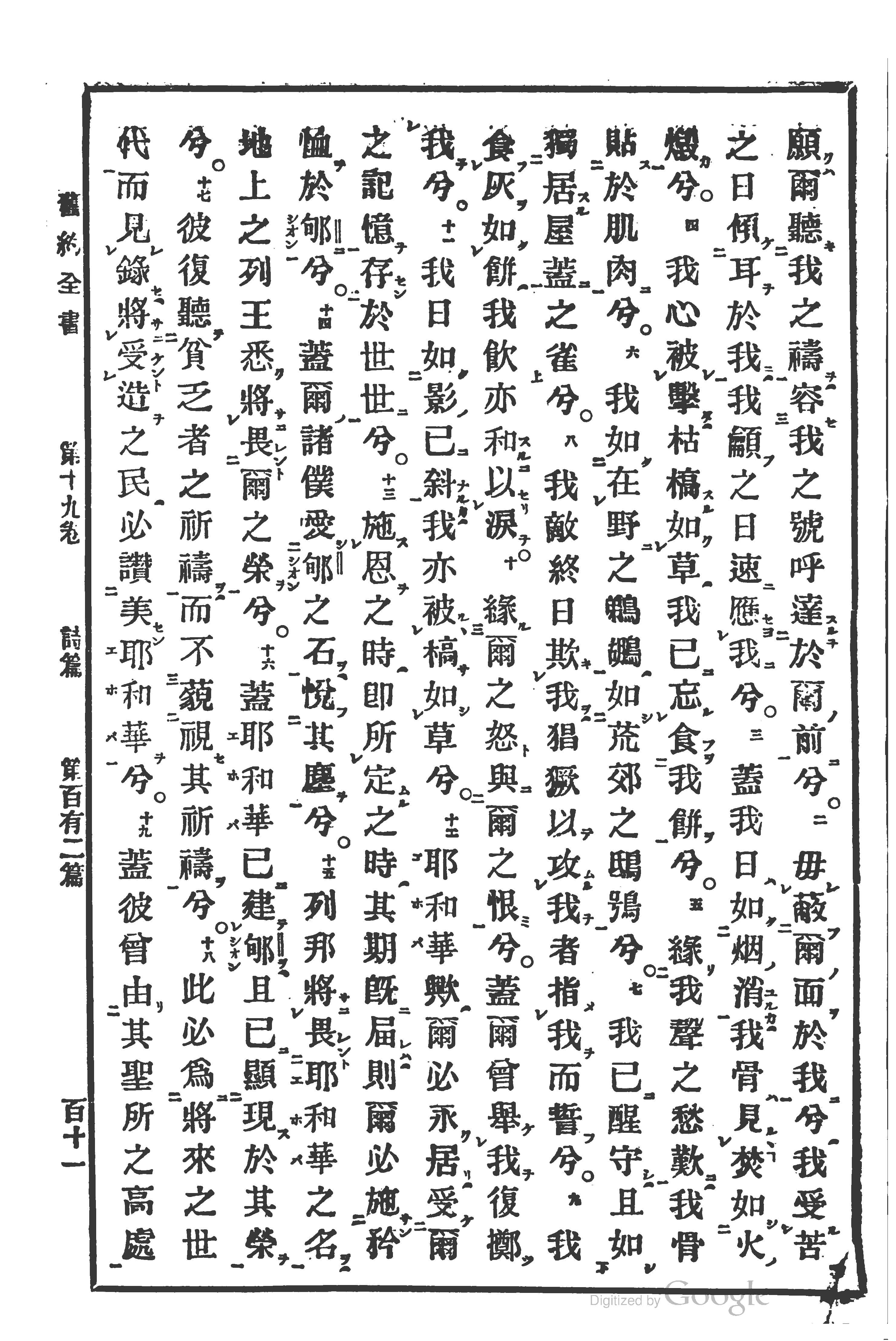 1880年训典诗篇 诗篇 102 章 2 节到 102 章 19 节