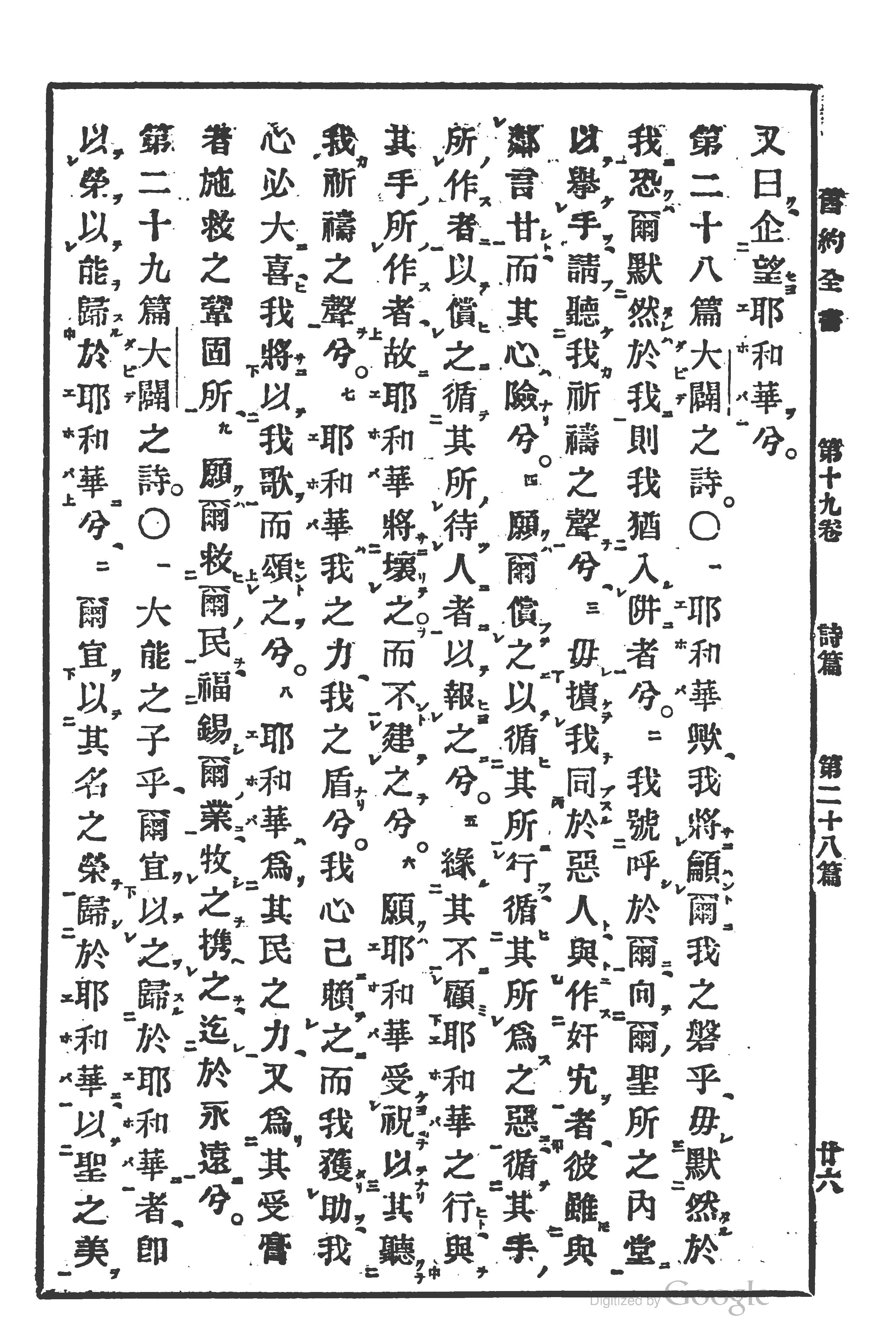 1880年训典诗篇 诗篇 28 章 1 节到 29 章 2 节