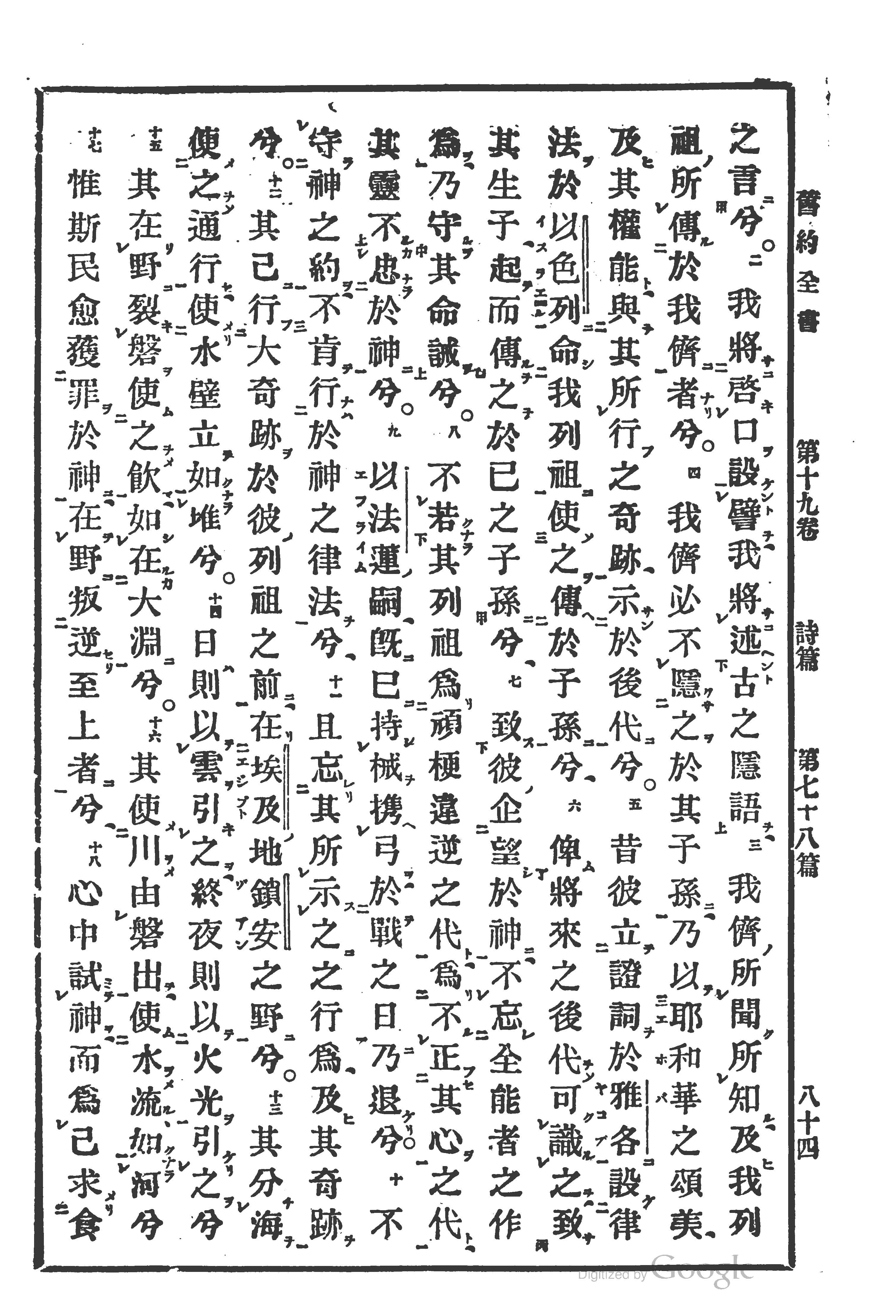 1880年训典诗篇 诗篇 78 章 2 节到 78 章 18 节