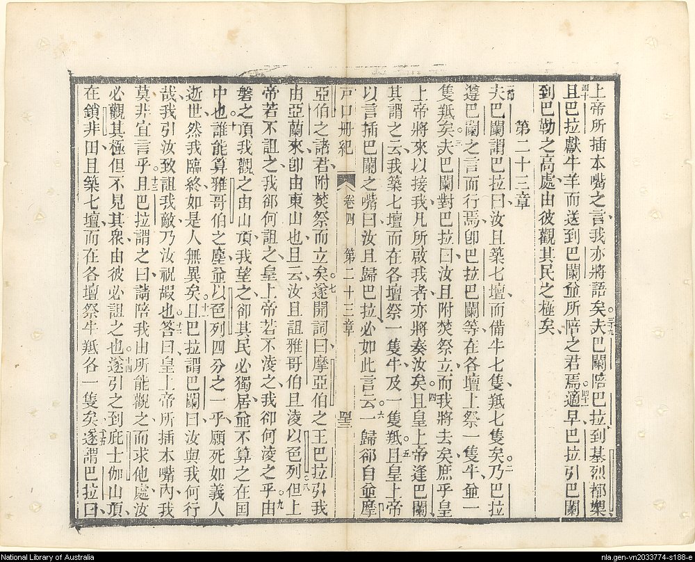 1853年旧遗诏圣书:创世记-民数记 民数记 22 章 39 节到 23 章 15 节