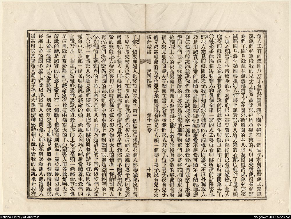 1889年新约全书 马可福音 12 章 6 节到 12 章 36 节
