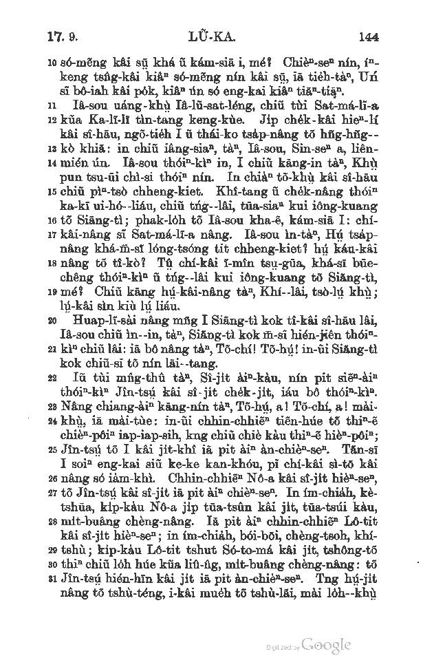 1892年新约马太福音-使徒行传 路加福音 17 章 10 节到 17 章 31 节