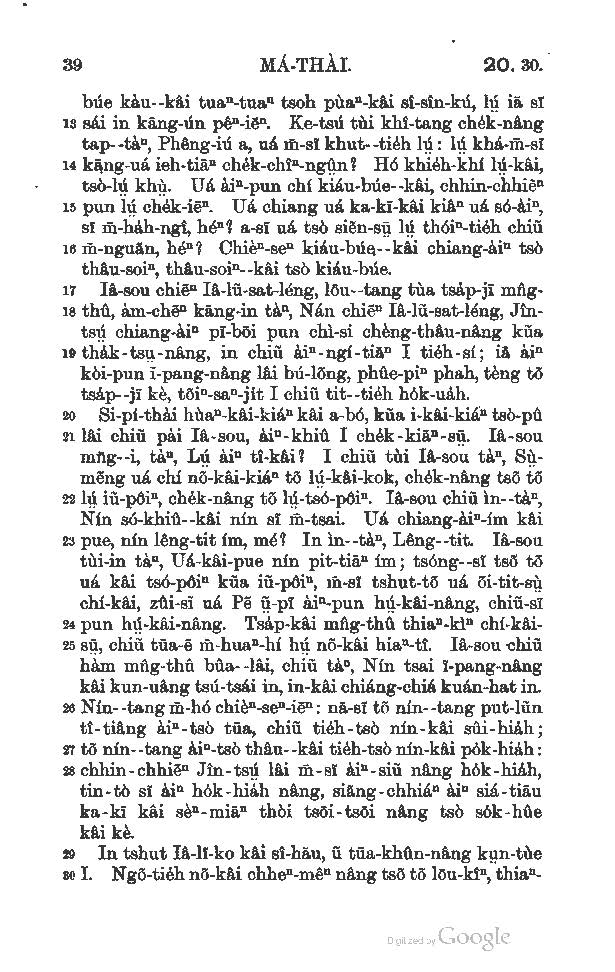 1892年新约马太福音-使徒行传 马太福音 20 章 13 节到 20 章 30 节