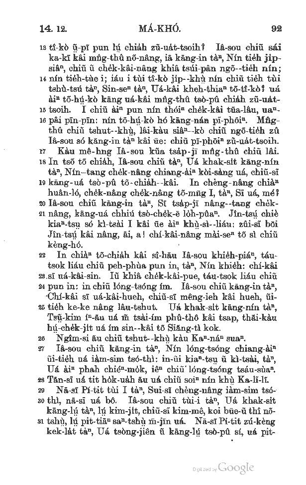1892年新约马太福音-使徒行传 马可福音 14 章 13 节到 14 章 31 节