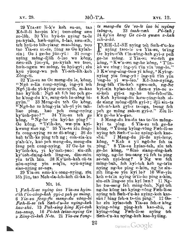 1897年新约全书 马太福音 15 章 29 节到 16 章 12 节