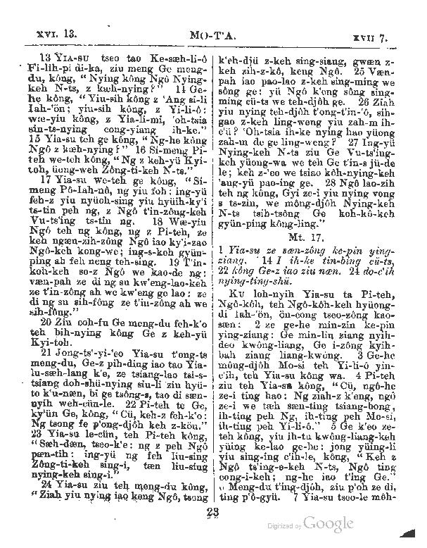 1897年新约全书 马太福音 16 章 13 节到 17 章 7 节