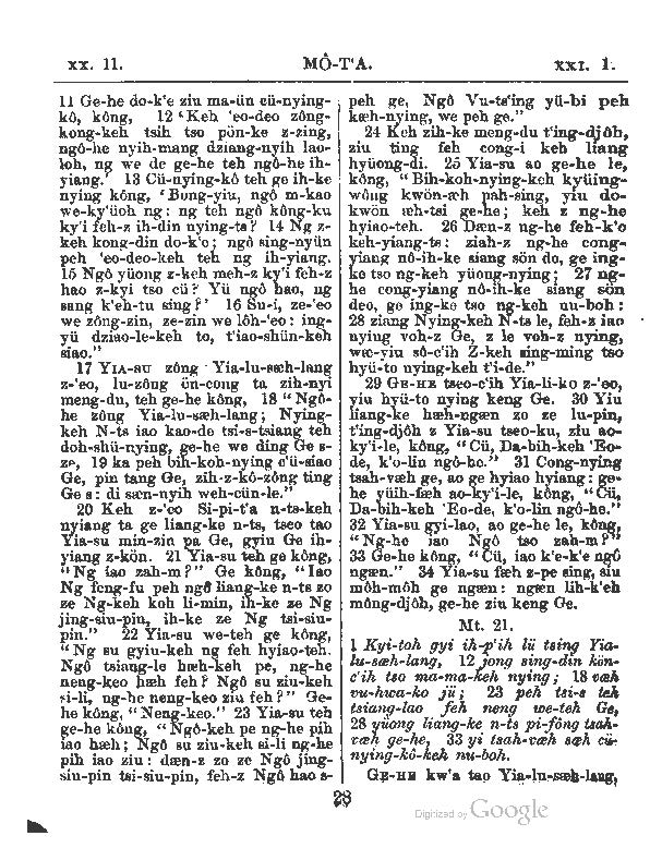 1897年新约全书 马太福音 20 章 11 节到 21 章 1 节