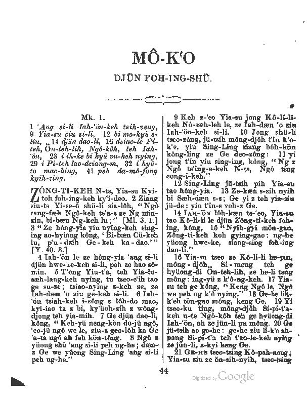 1897年新约全书 马可福音 1 章 1 节到 1 章 21 节