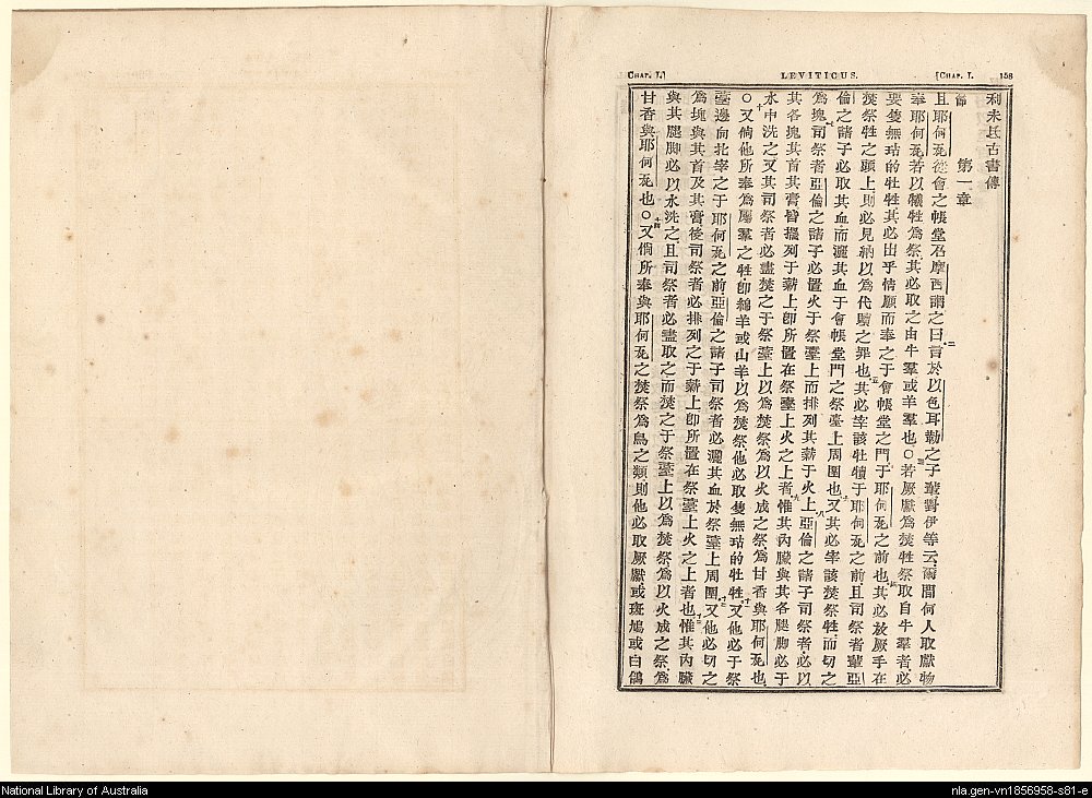 1823年旧约创世记、出埃及记 利未记 1 章 1 节到 1 章 14 节