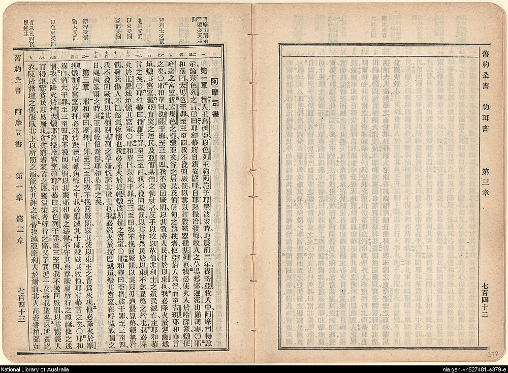 1919年新旧约全书(文理和合本) 阿摩司书 1 章 1 节到 2 章 9 节