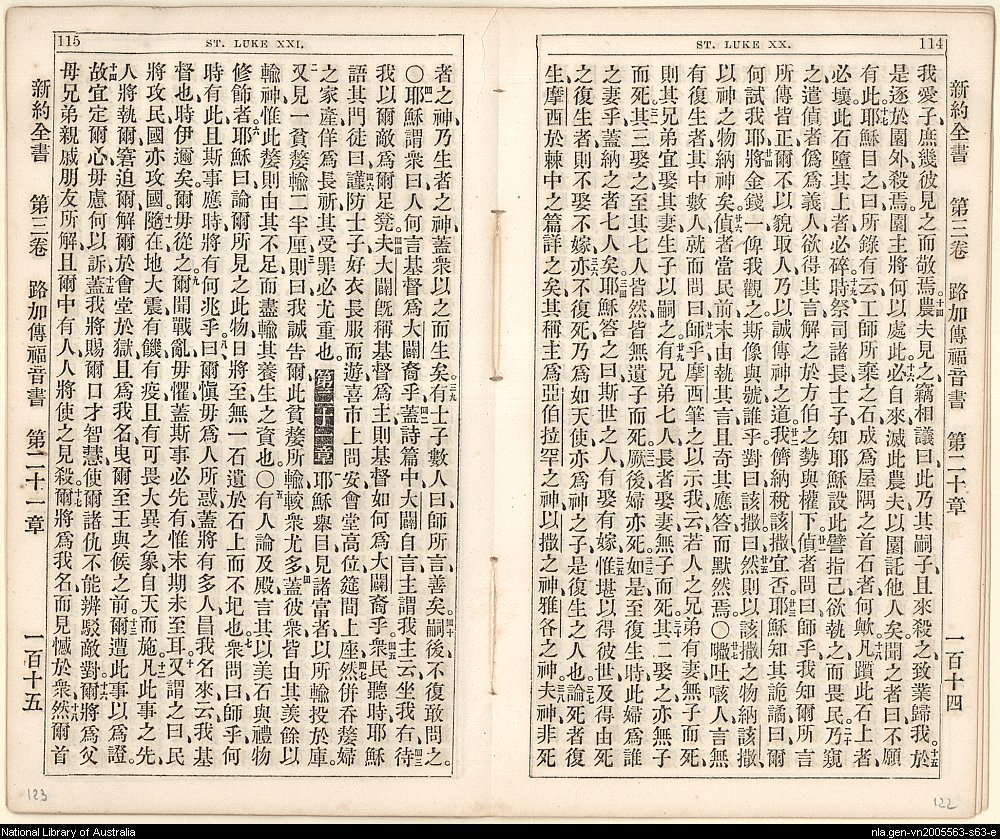 1864年新约全书 路加福音 20 章 14 节到 21 章 18 节