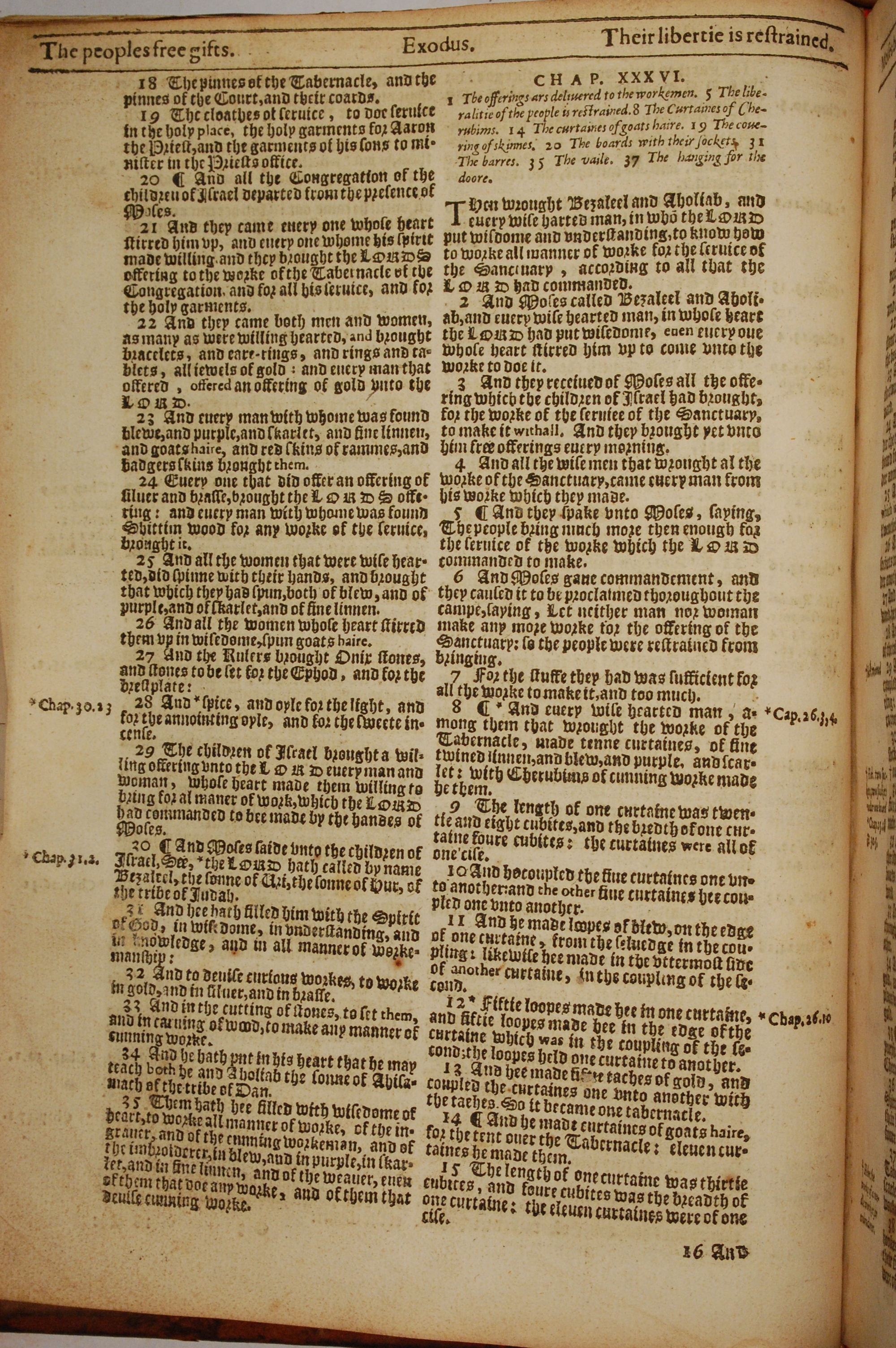 1613年The Genealogies recorded in the sacred scriptures 出埃及记 35 章 18 节到 36 章 15 节