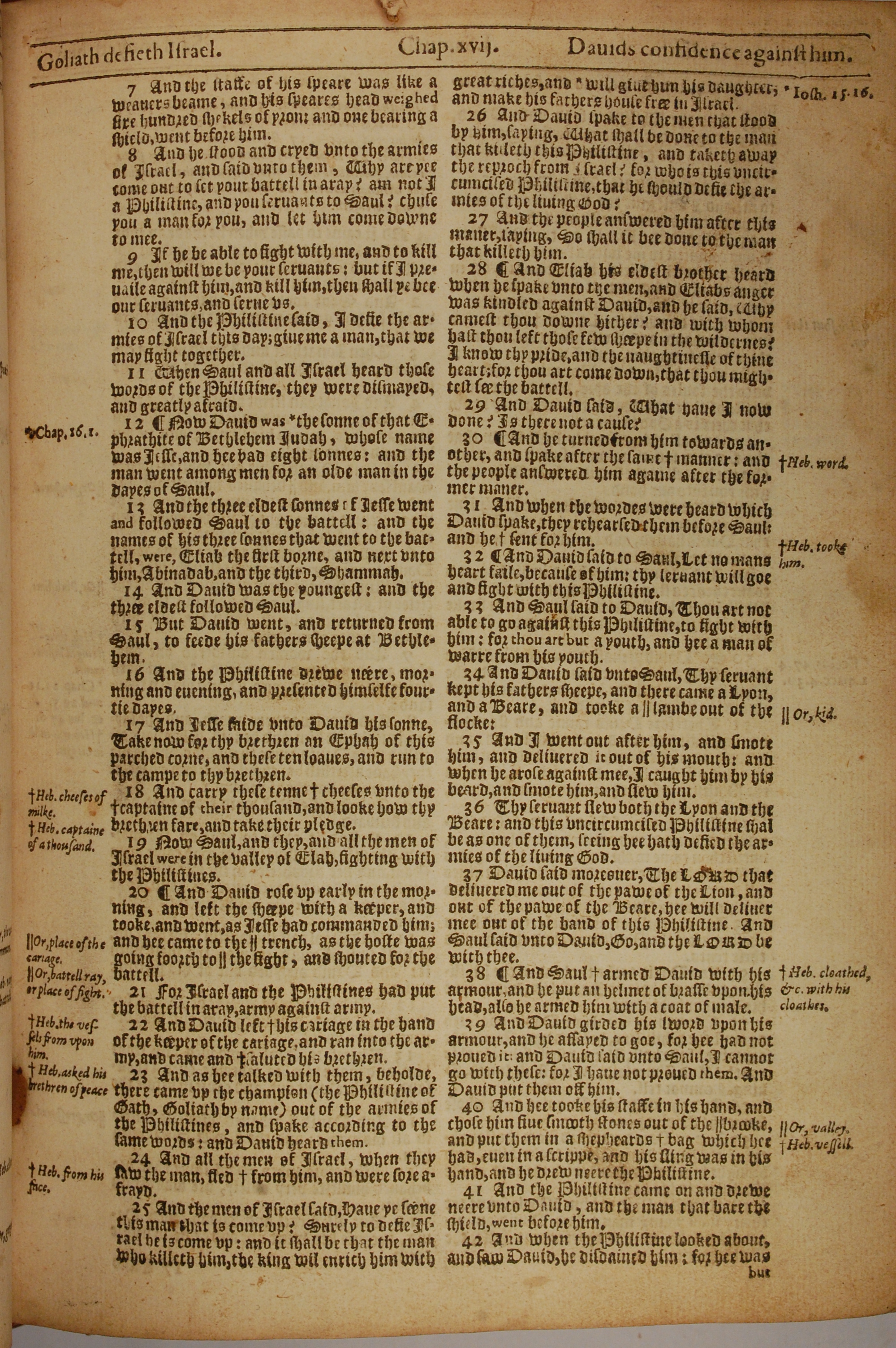 1613年The Genealogies recorded in the sacred scriptures 撒母耳记上 17 章 7 节到 17 章 42 节