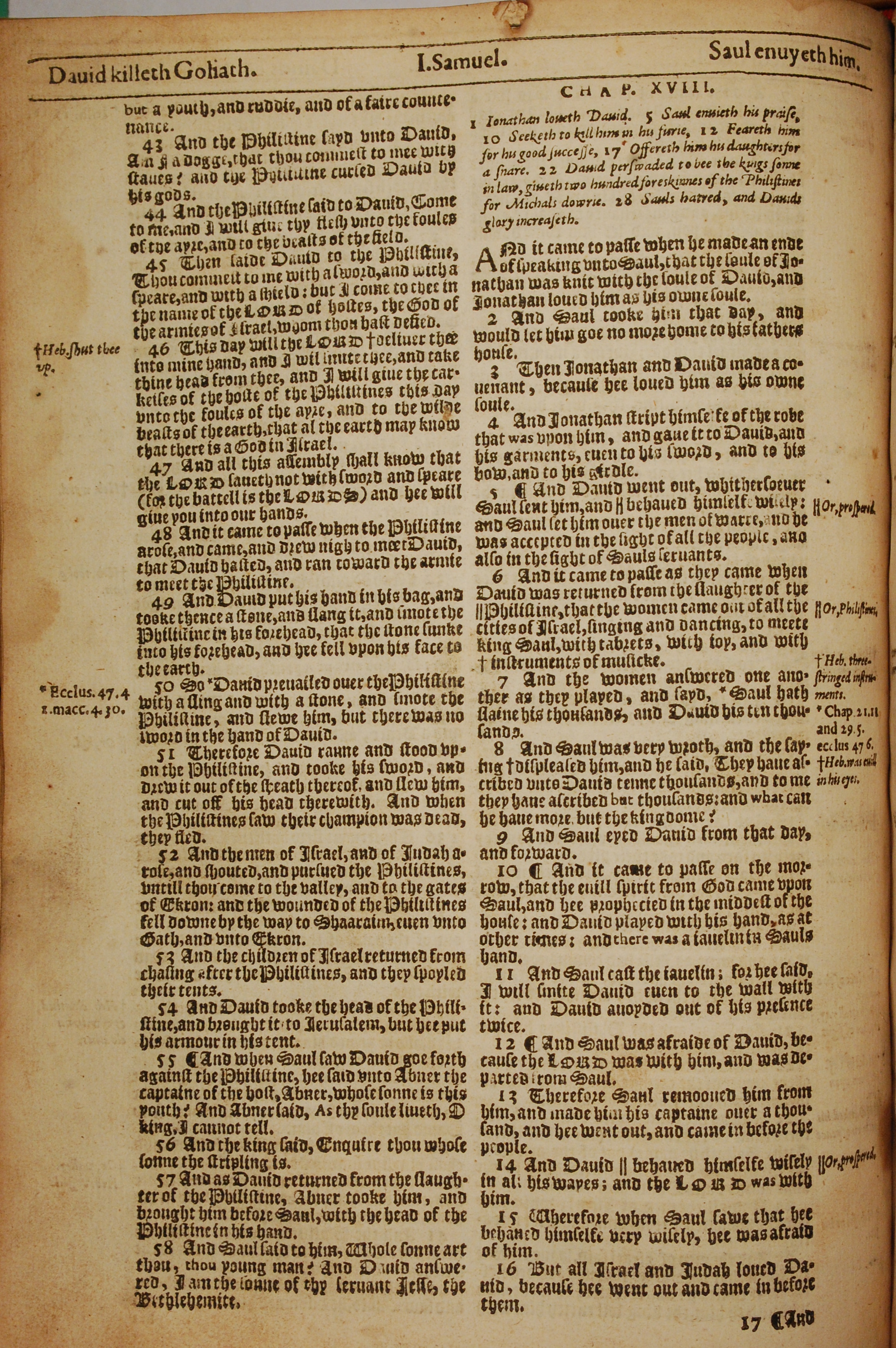 1613年The Genealogies recorded in the sacred scriptures 撒母耳记上 17 章 43 节到 18 章 16 节