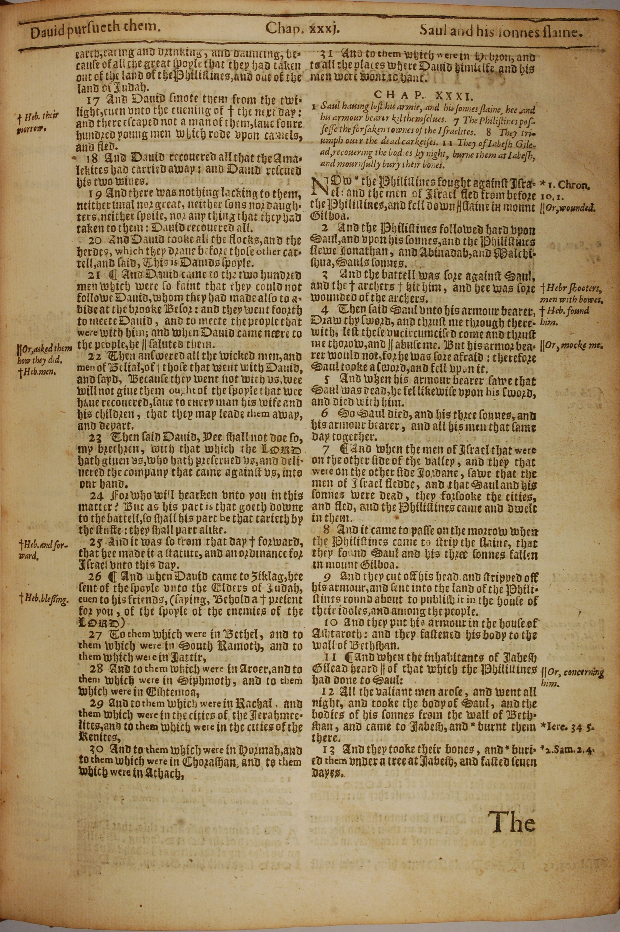 1613年The Genealogies recorded in the sacred scriptures 撒母耳记上 30 章 17 节到 31 章 13 节