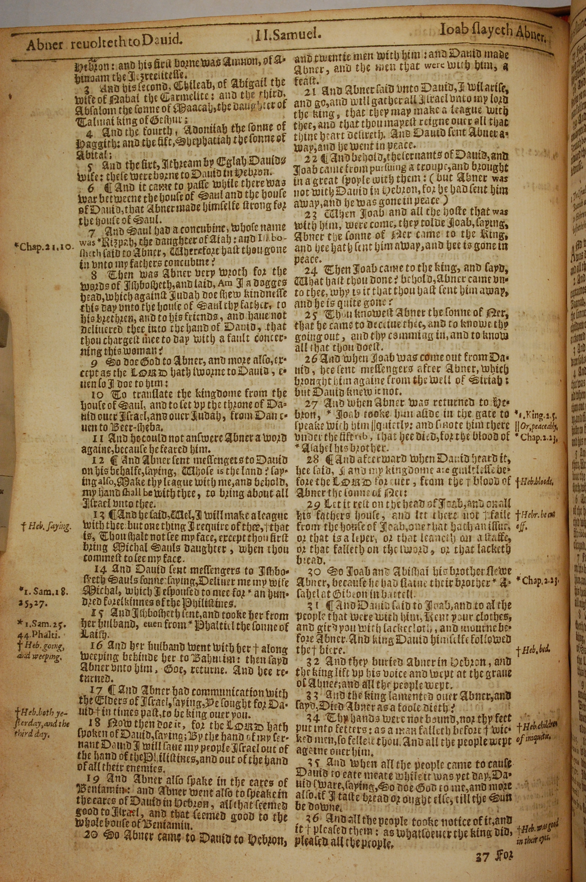 1613年The Genealogies recorded in the sacred scriptures 撒母耳记下 3 章 3 节到 3 章 36 节