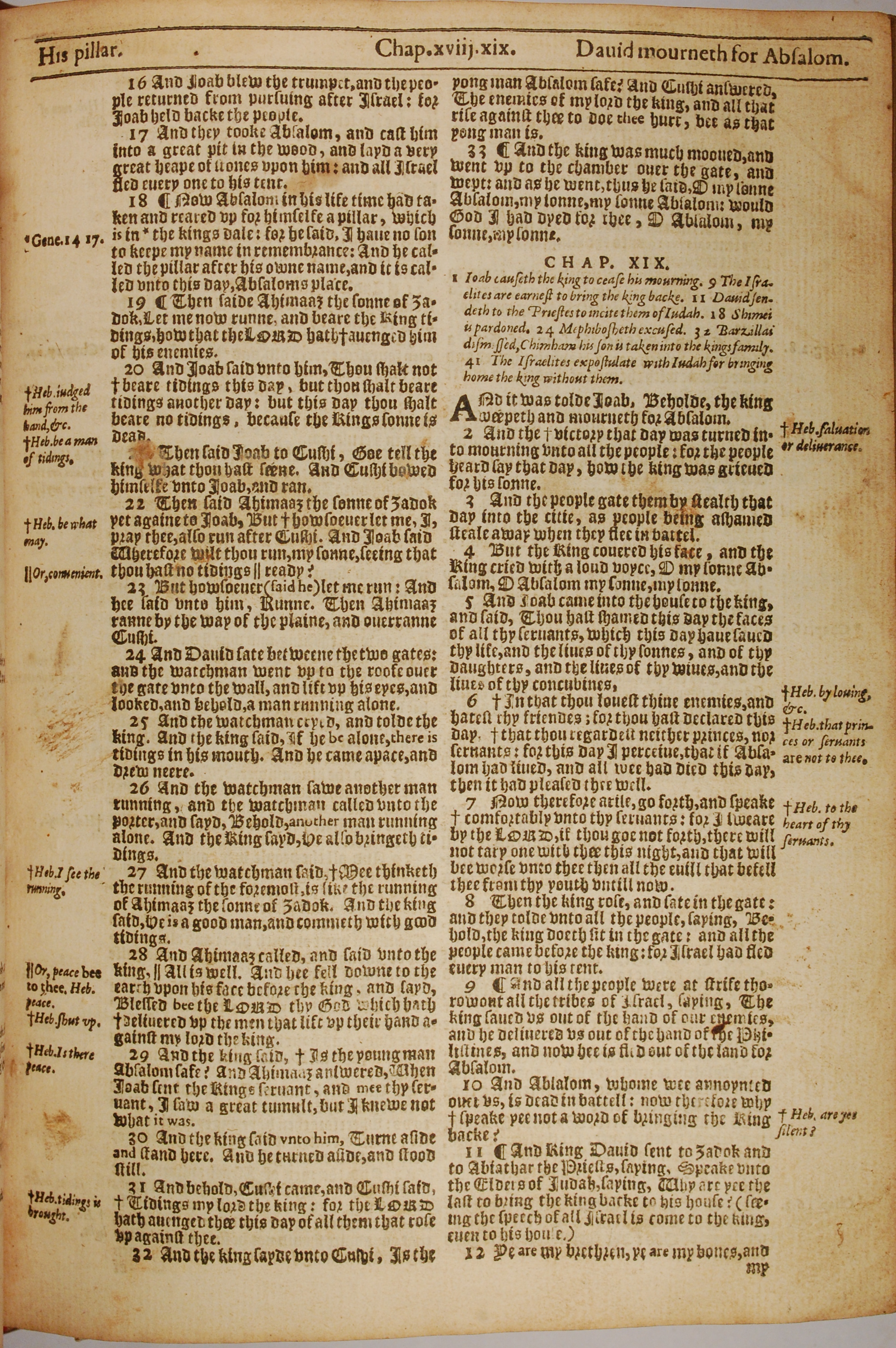 1613年The Genealogies recorded in the sacred scriptures 撒母耳记下 18 章 16 节到 19 章 12 节