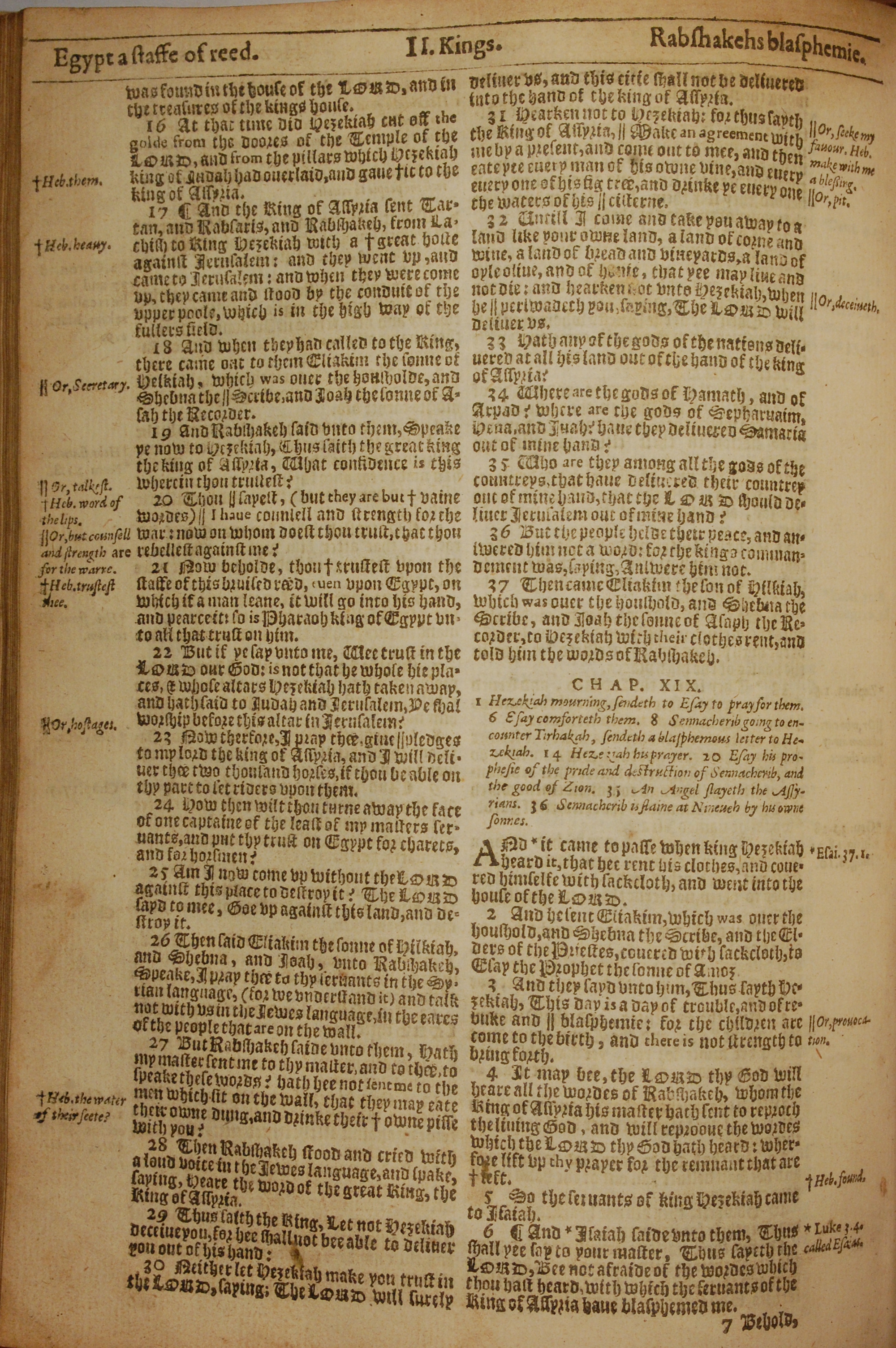 1613年The Genealogies recorded in the sacred scriptures 列王纪下 18 章 16 节到 19 章 6 节