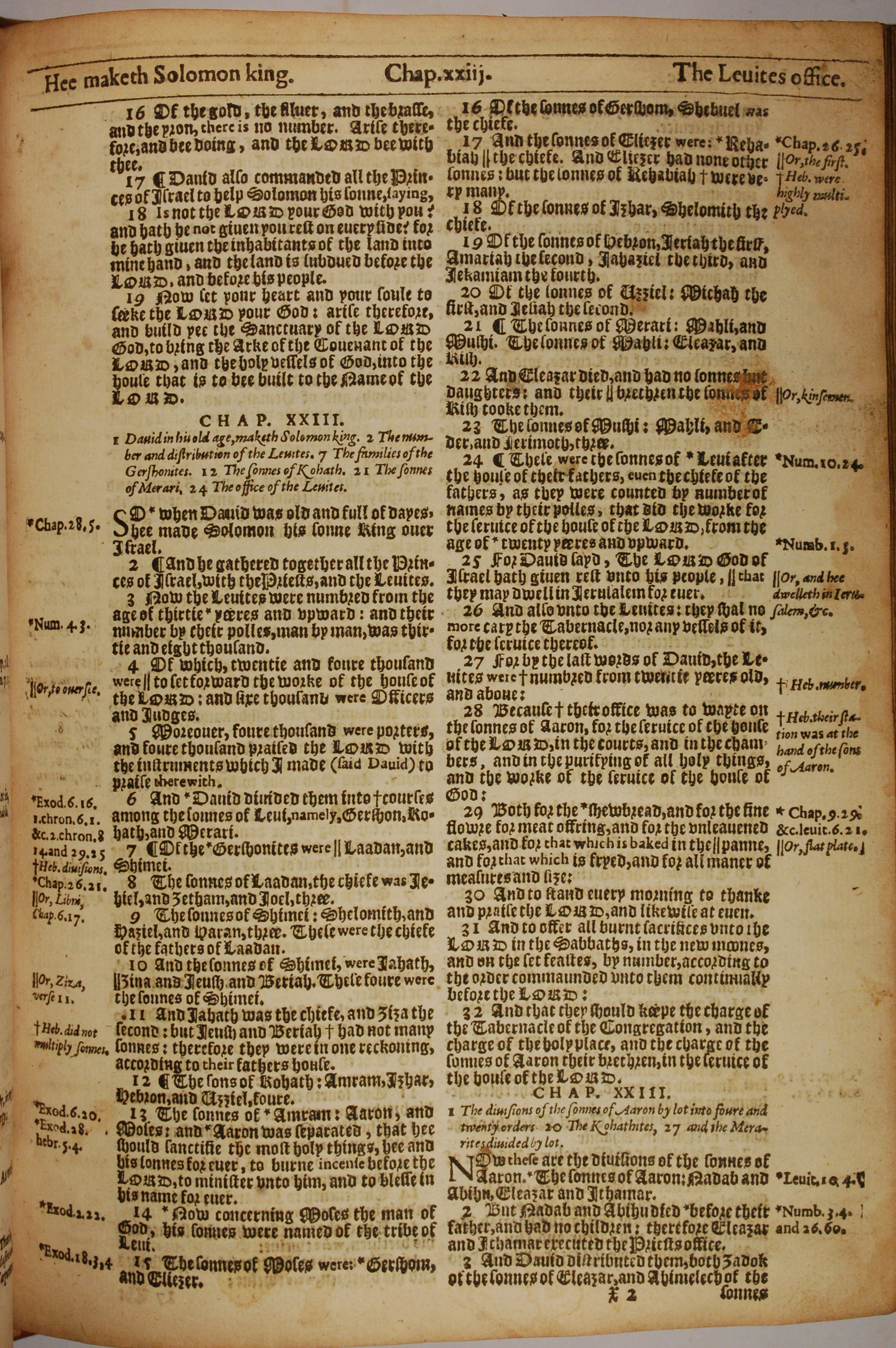 1613年The Genealogies recorded in the sacred scriptures 历代志上 22 章 16 节到 24 章 3 节
