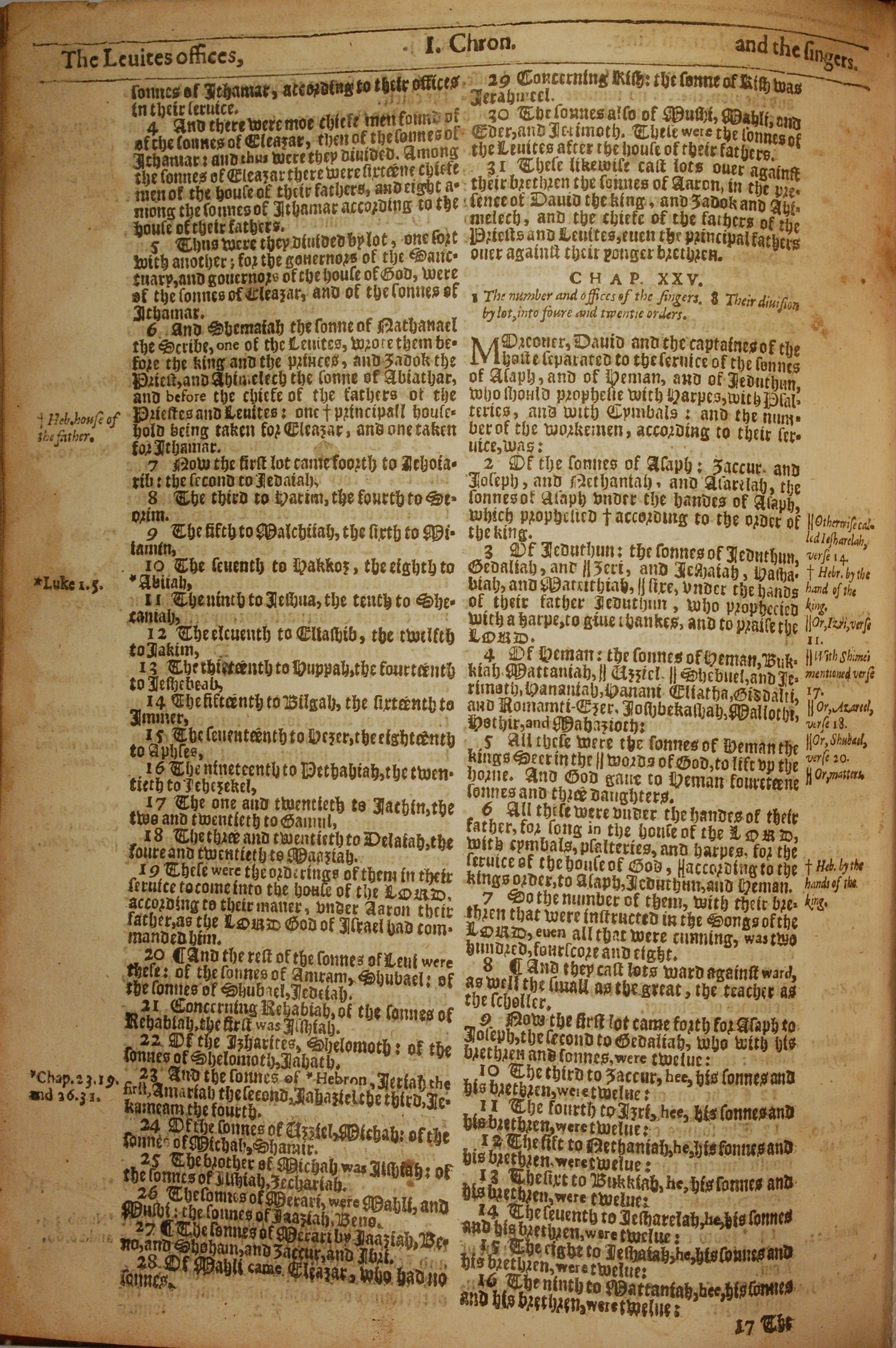 1613年The Genealogies recorded in the sacred scriptures 历代志上 24 章 4 节到 25 章 16 节