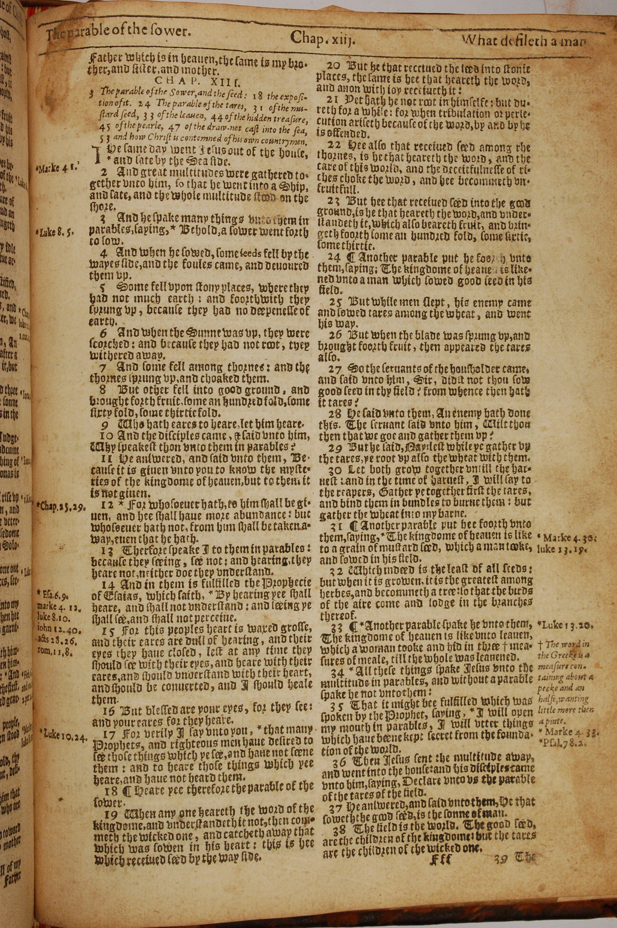 1613年The Genealogies recorded in the sacred scriptures 马太福音 13 章 1 节到 13 章 38 节