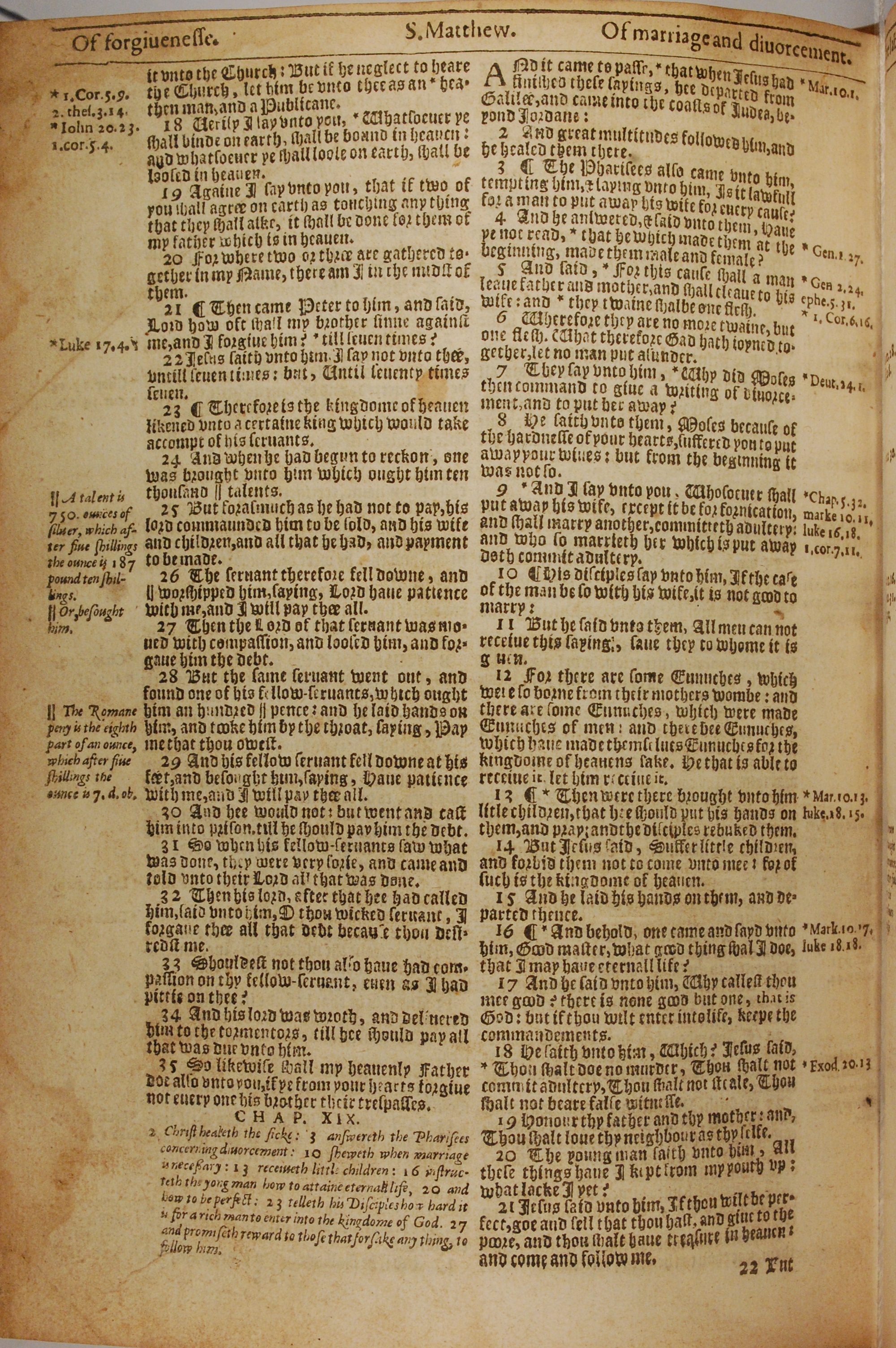 1613年The Genealogies recorded in the sacred scriptures 马太福音 18 章 18 节到 19 章 21 节