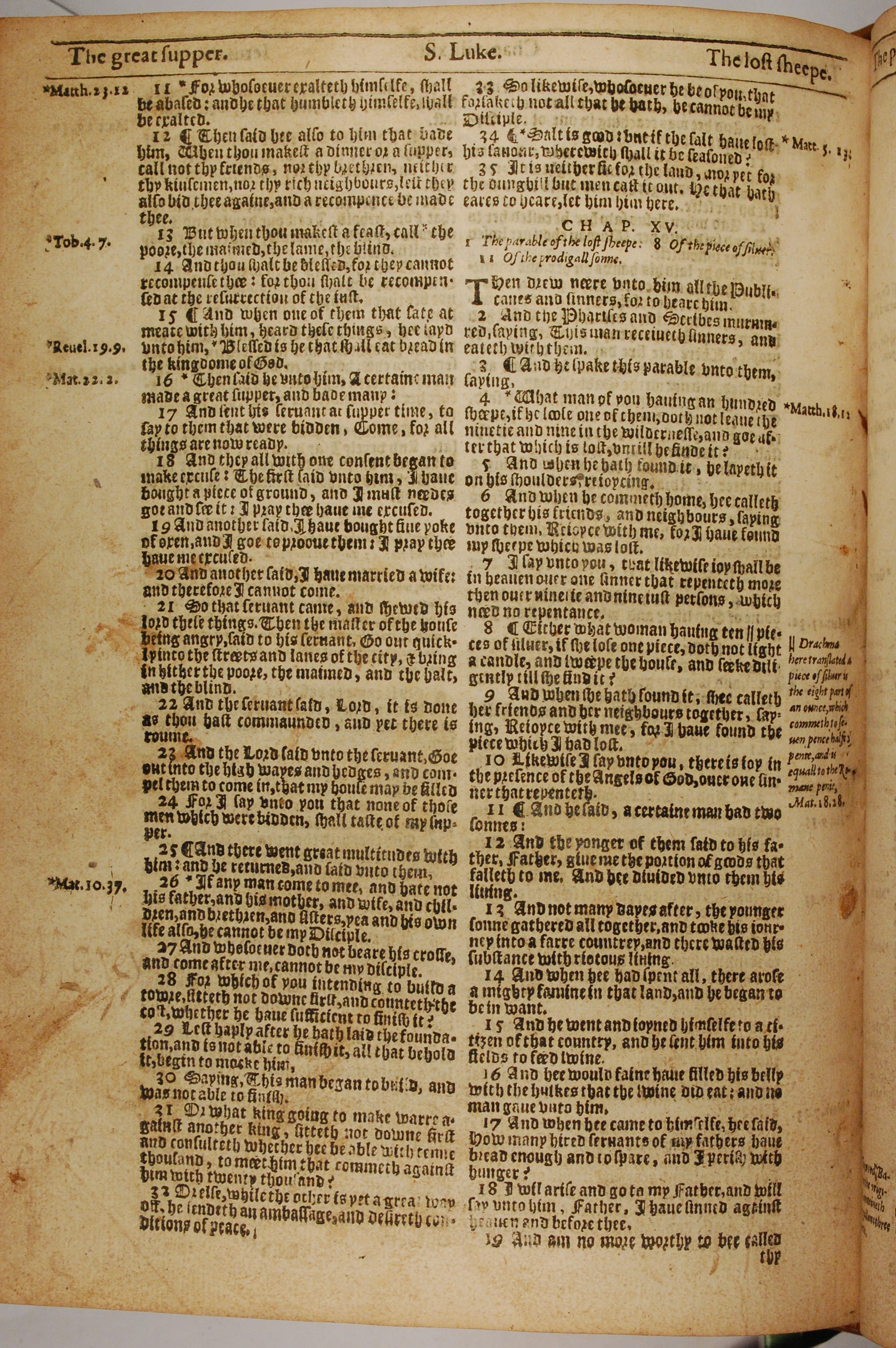 1613年The Genealogies recorded in the sacred scriptures 路加福音 14 章 11 节到 15 章 19 节
