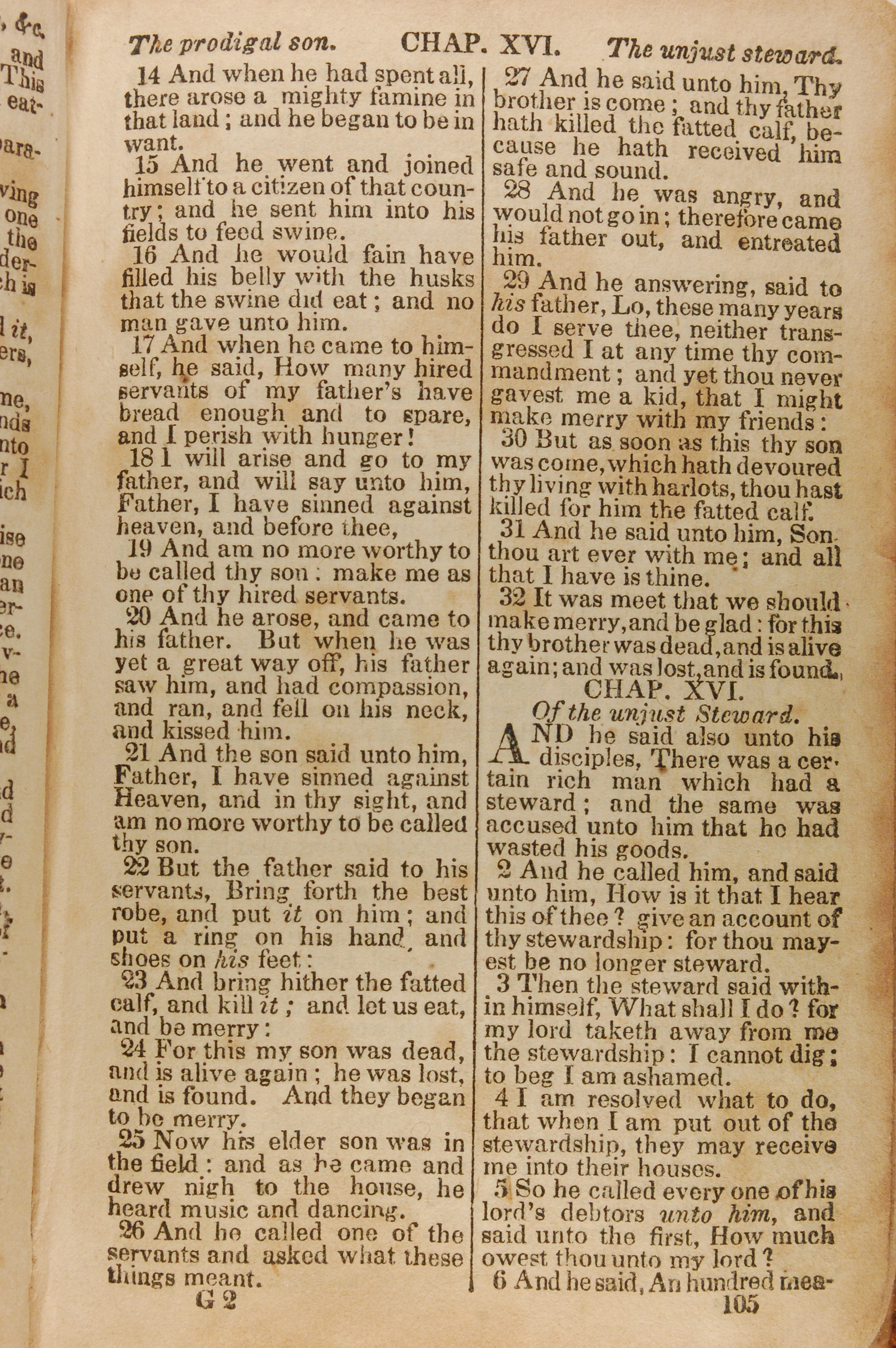 1843年The New Testament 路加福音 15 章 14 节到 16 章 6 节