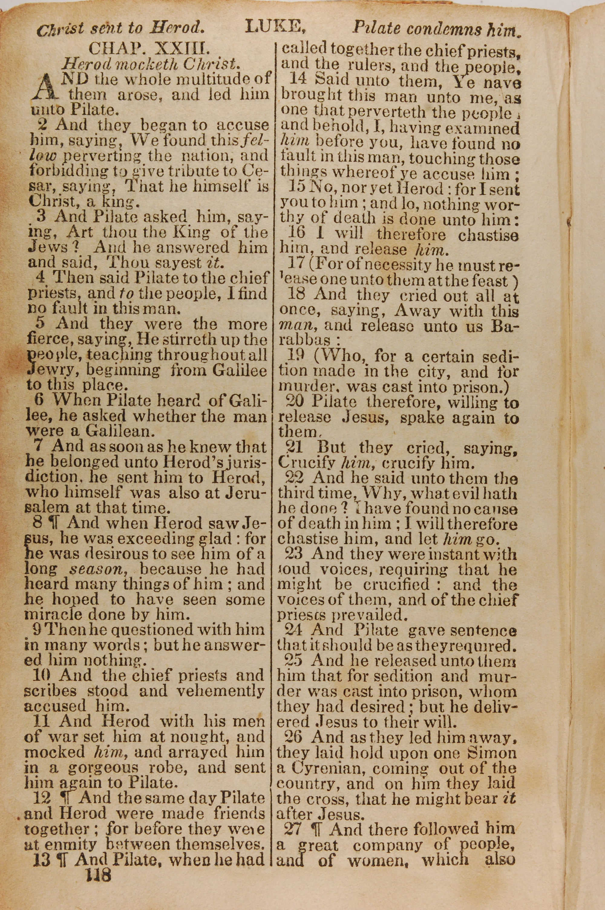 1843年The New Testament 路加福音 23 章 1 节到 23 章 27 节