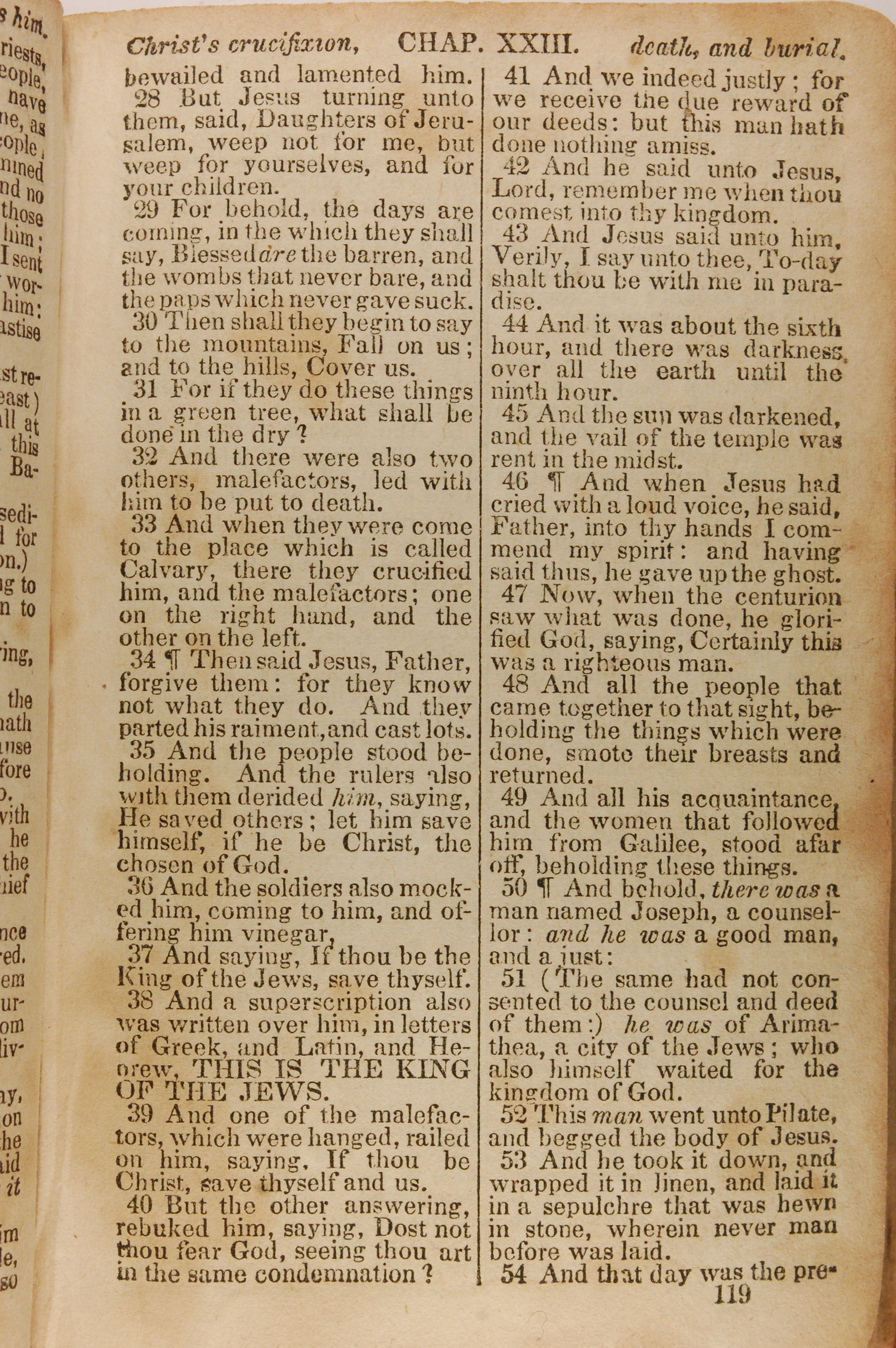 1843年The New Testament 路加福音 23 章 28 节到 23 章 54 节