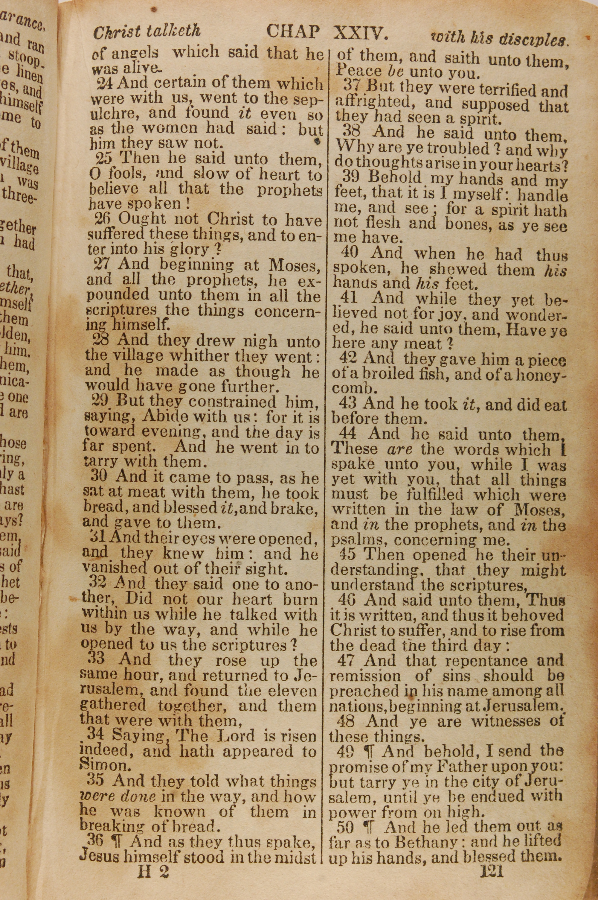 1843年The New Testament 路加福音 24 章 24 节到 24 章 50 节