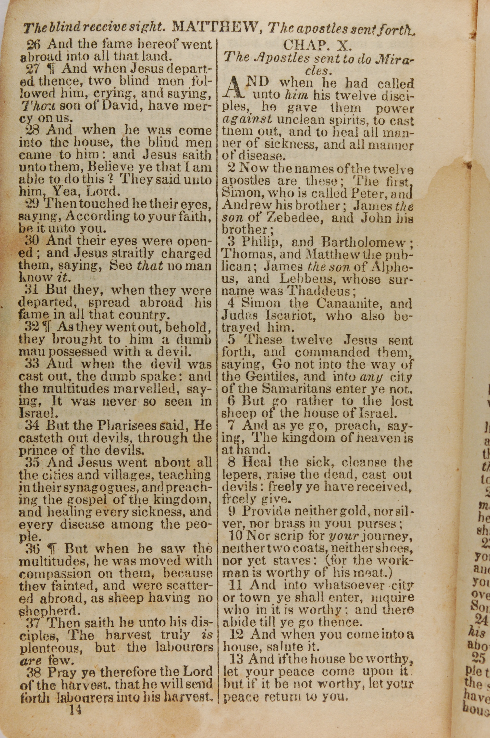 1843年The New Testament 马太福音 9 章 26 节到 10 章 13 节