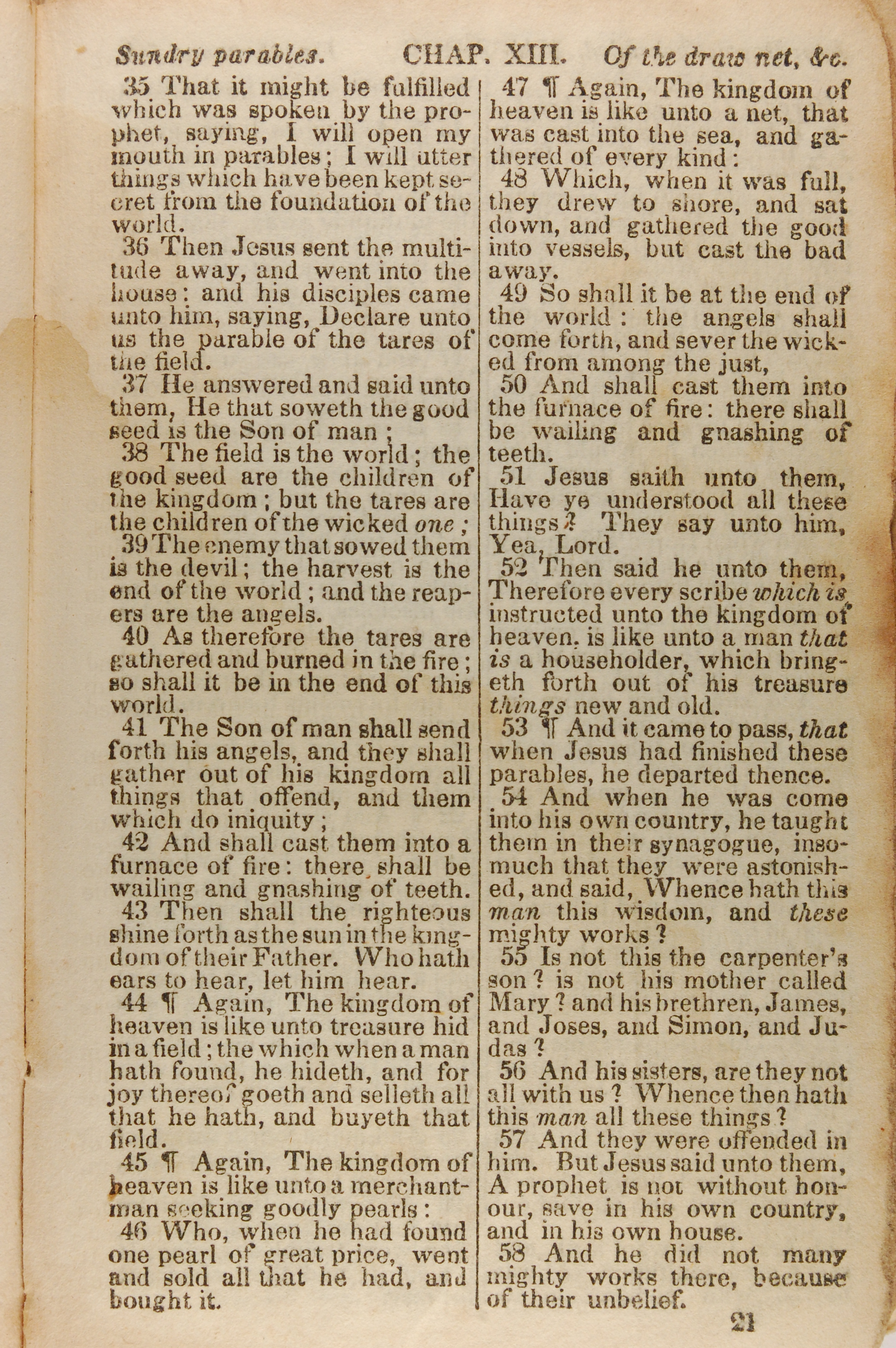 1843年The New Testament 马太福音 13 章 35 节到 13 章 58 节