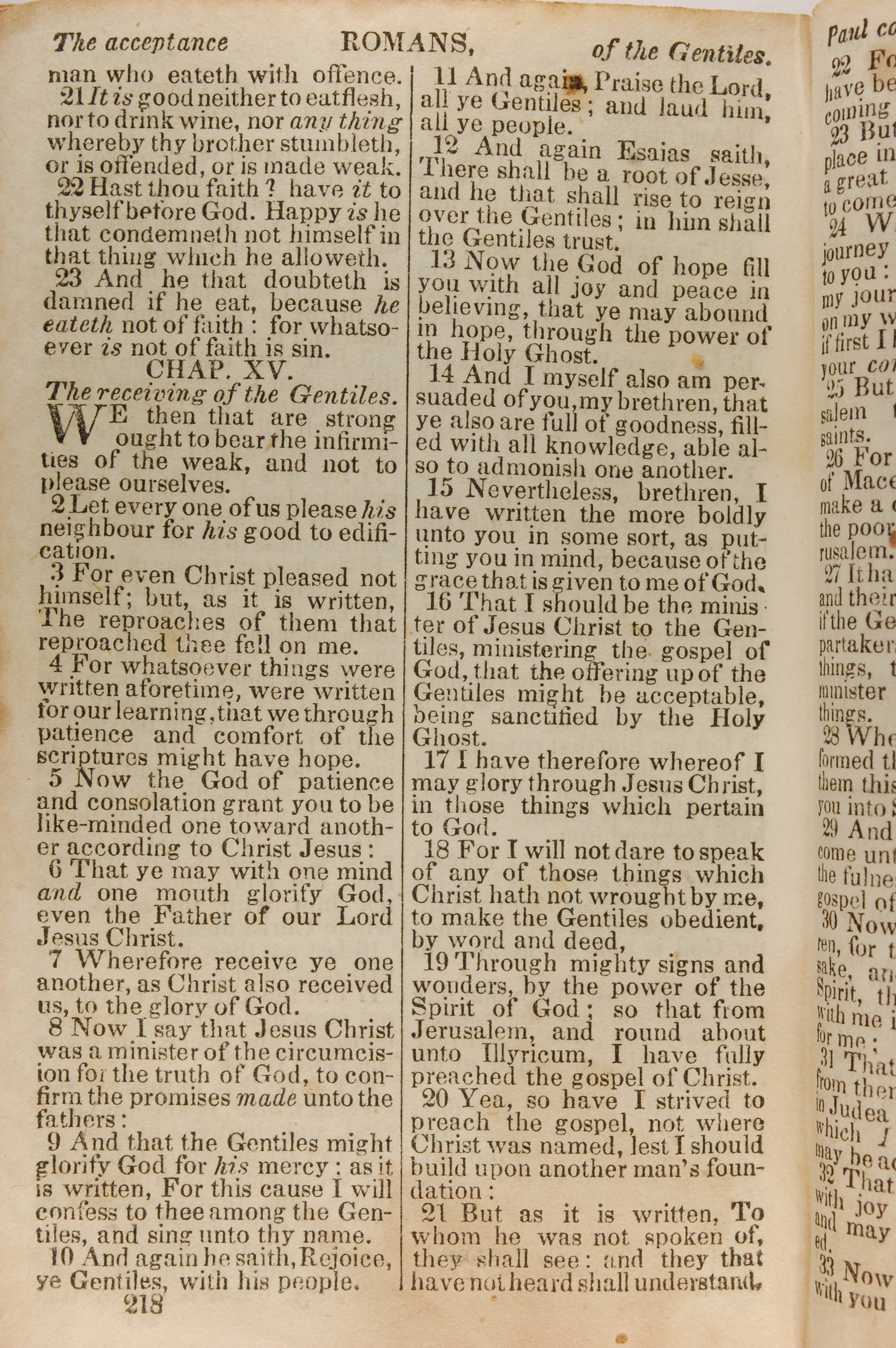 1843年The New Testament 罗马书 14 章 21 节到 15 章 21 节