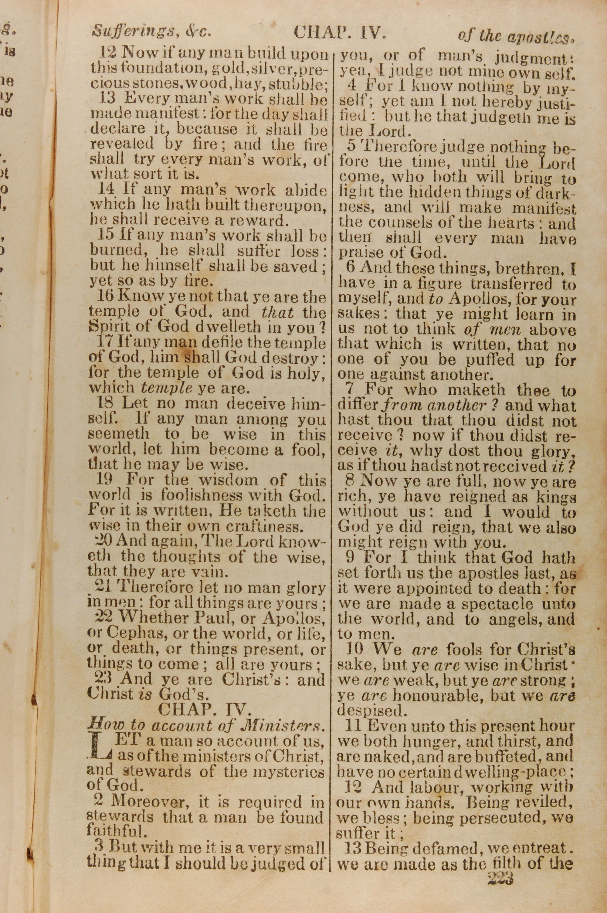 1843年The New Testament 哥林多前书 3 章 12 节到 4 章 13 节