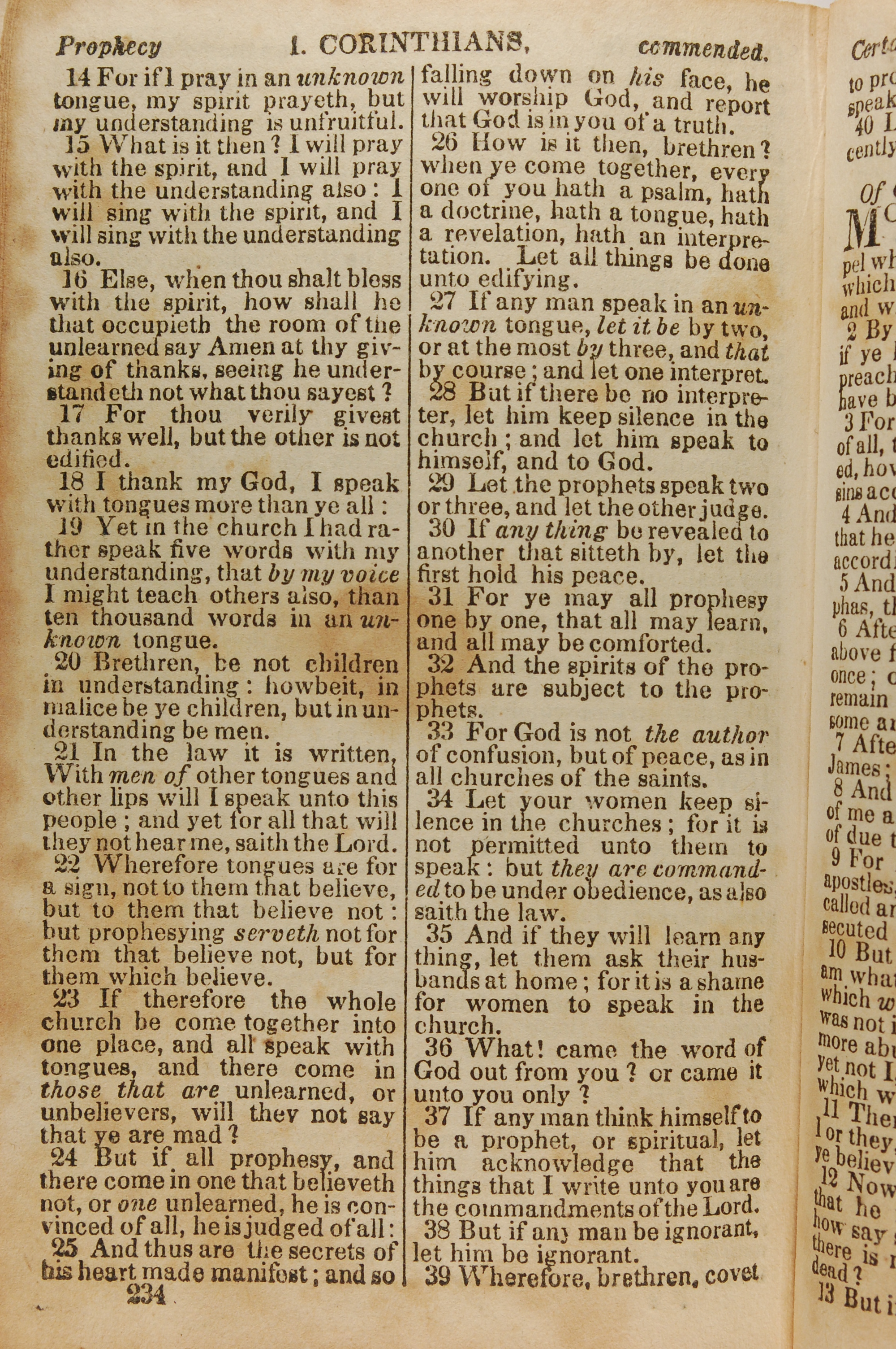 1843年The New Testament 哥林多前书 14 章 14 节到 14 章 39 节