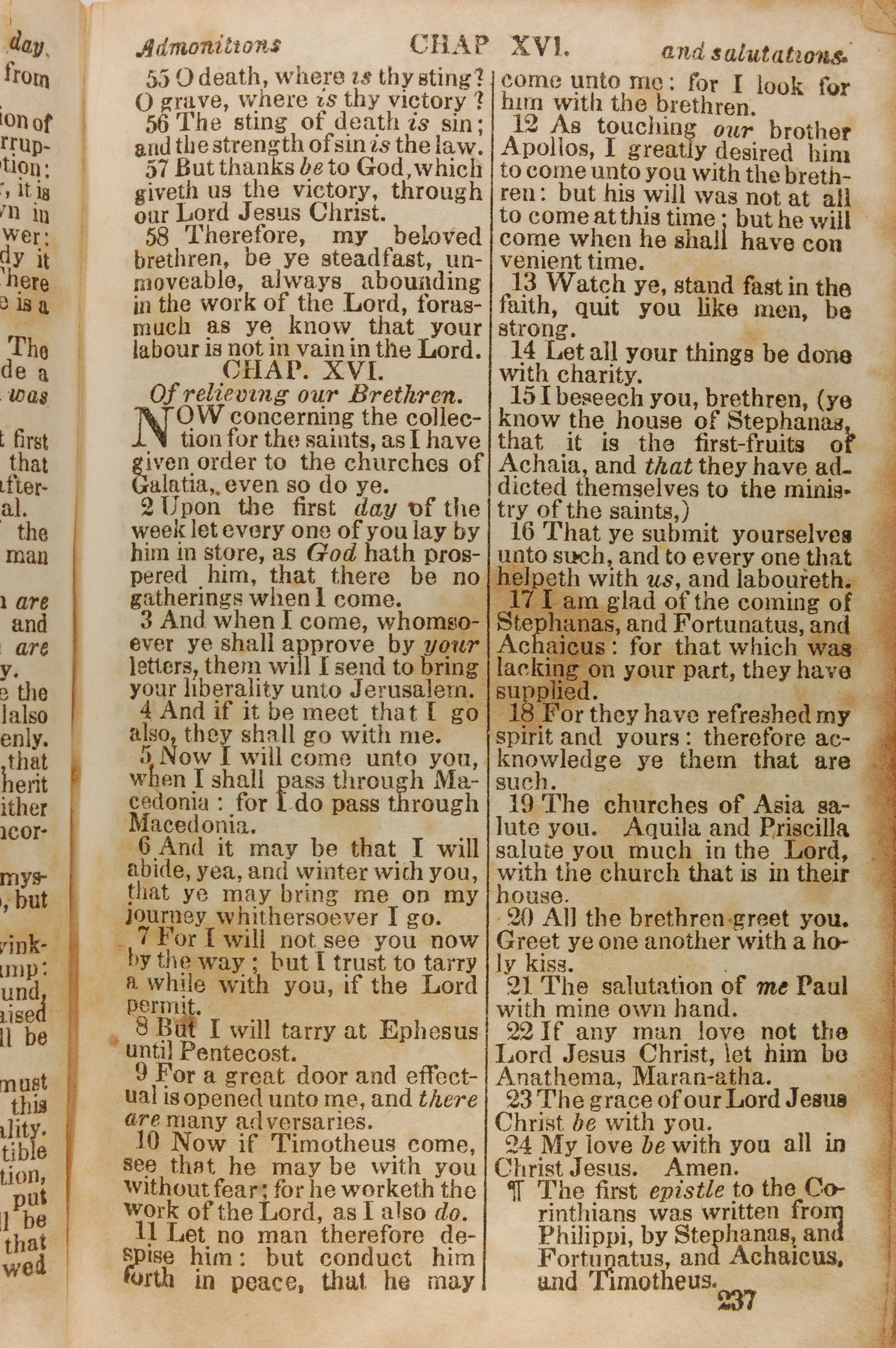 1843年The New Testament 哥林多前书 15 章 55 节到 16 章 24 节
