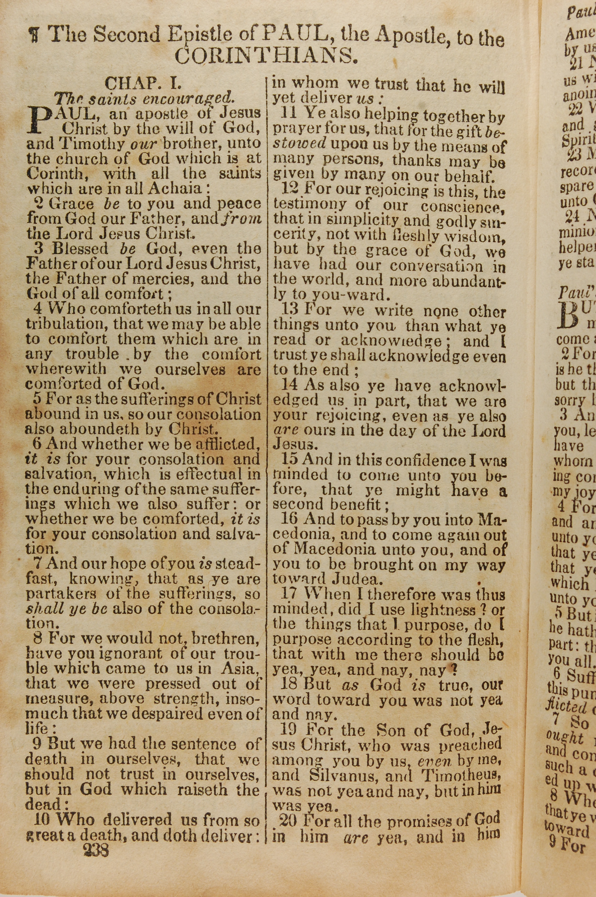 1843年The New Testament 哥林多后书 1 章 1 节到 1 章 20 节