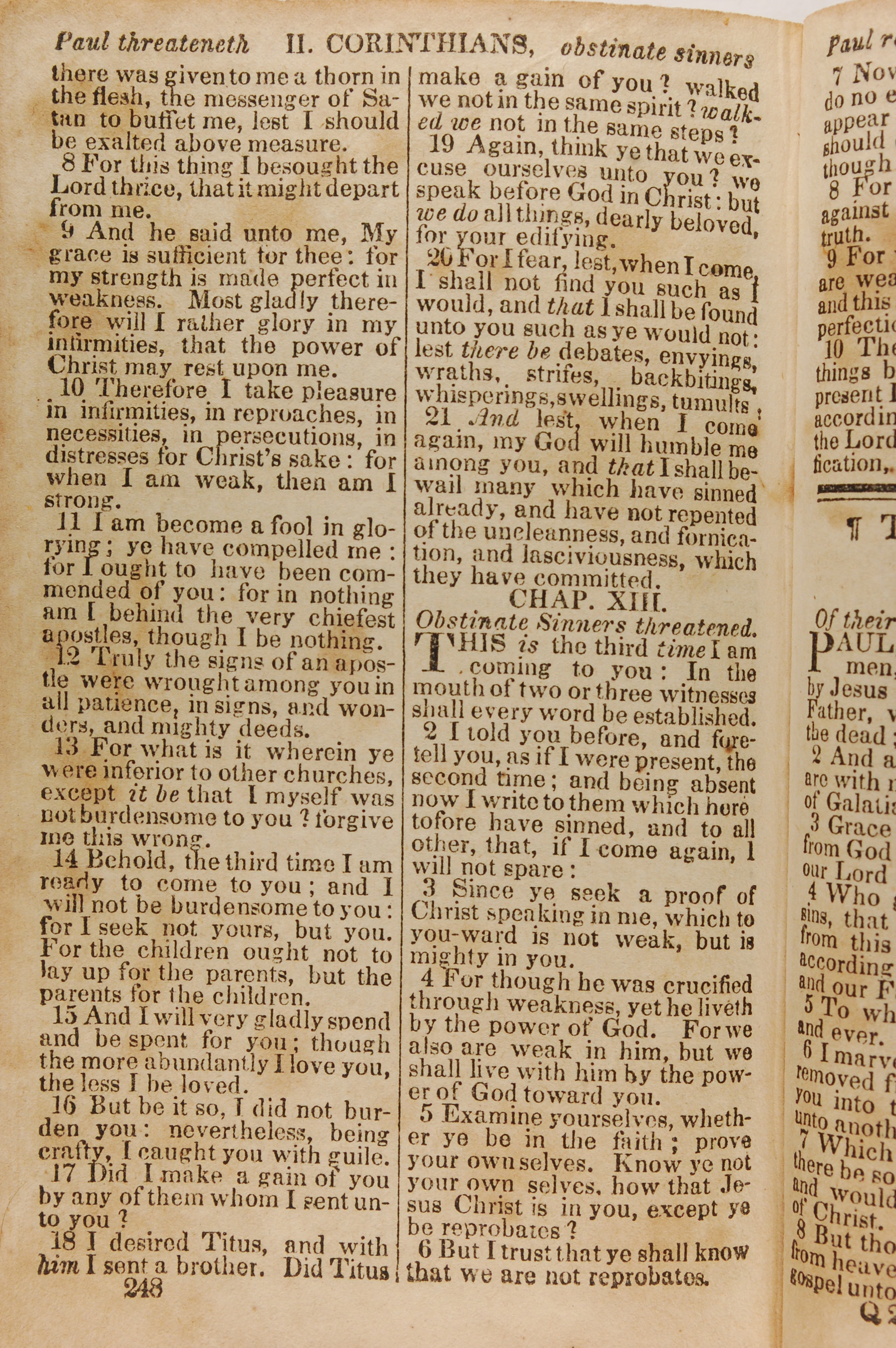 1843年The New Testament 哥林多后书 12 章 8 节到 13 章 6 节