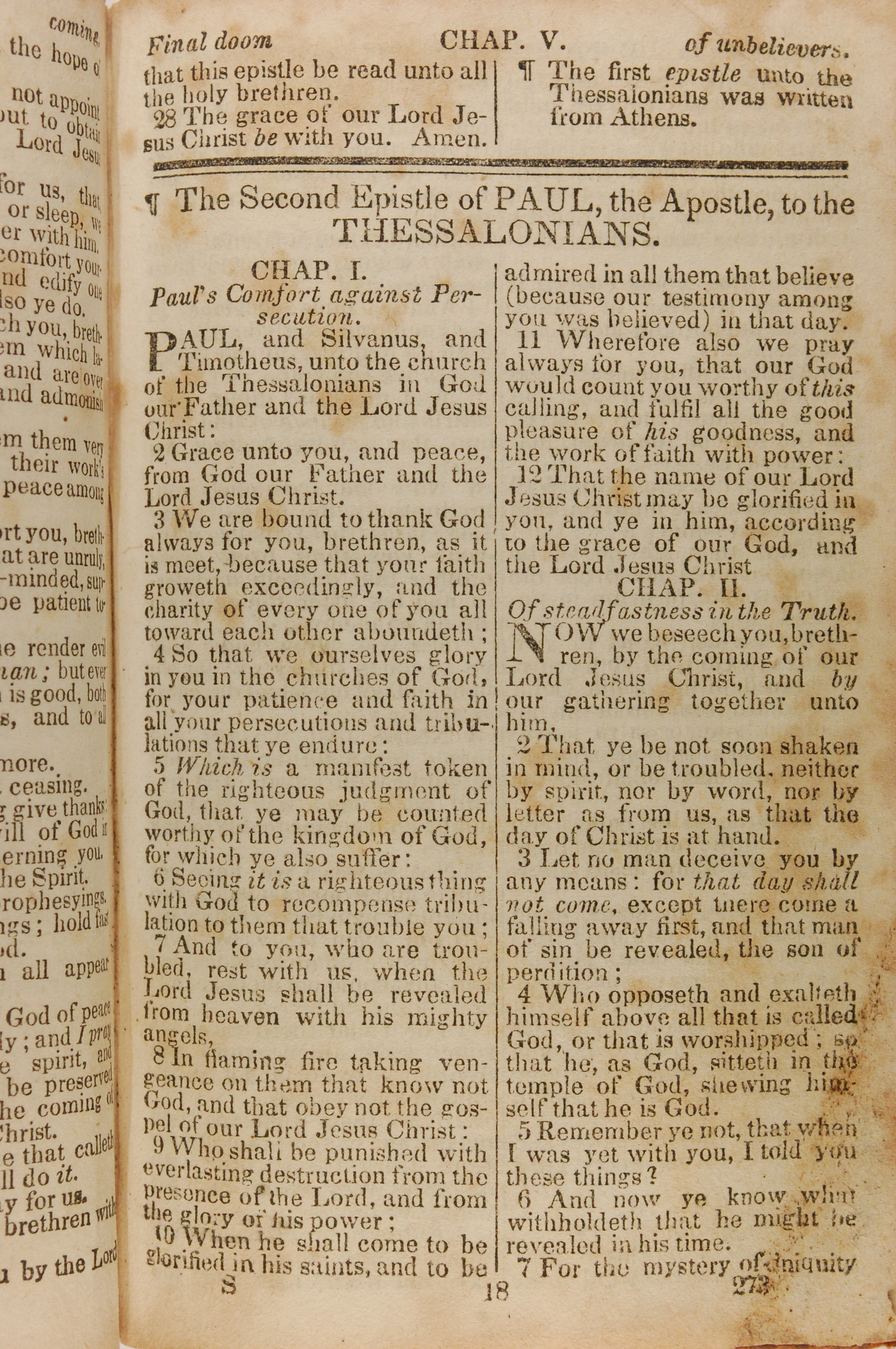 1843年The New Testament 帖撒罗尼迦后书 1 章 1 节到 2 章 7 节