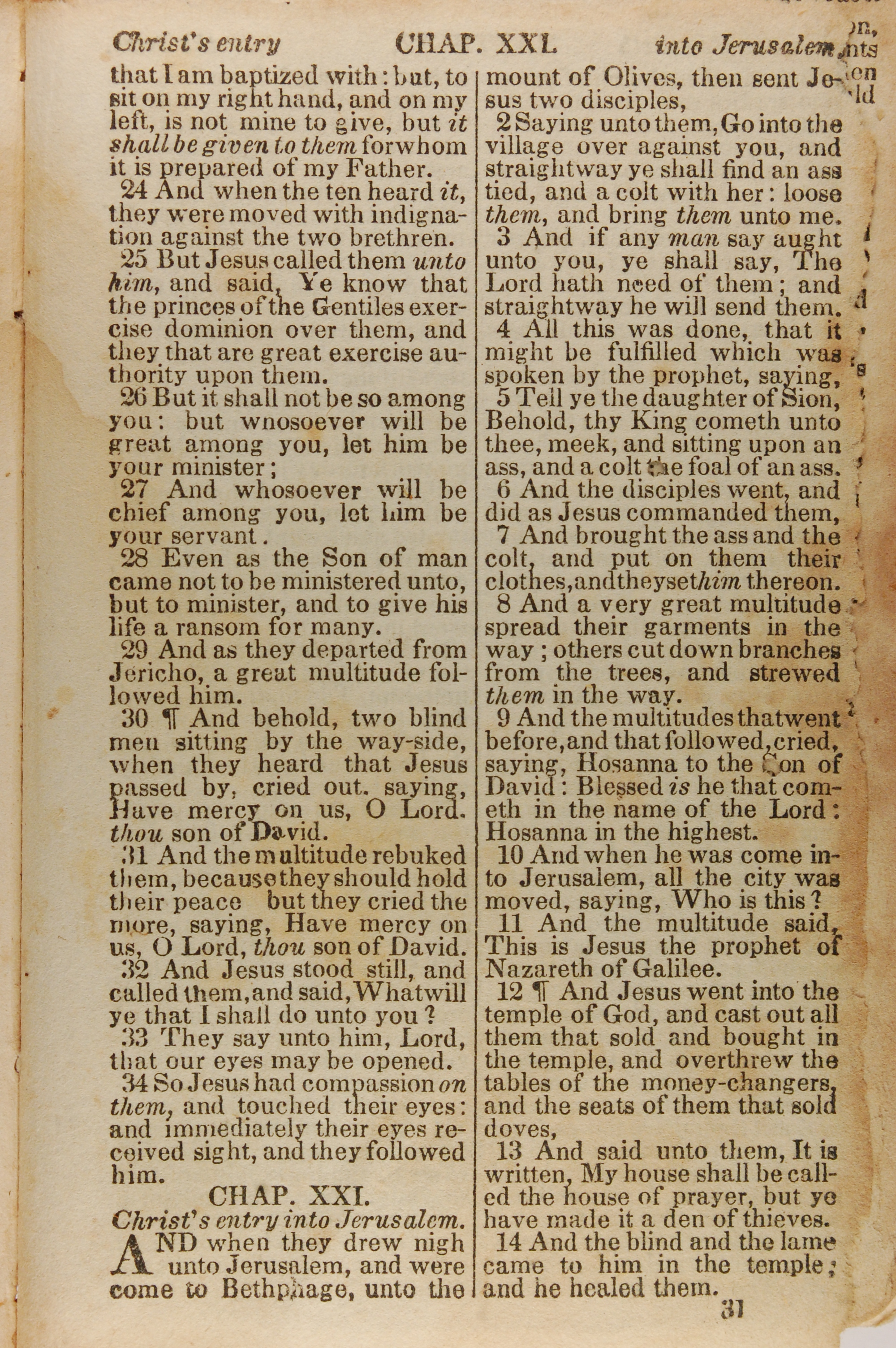 1843年The New Testament 马太福音 20 章 24 节到 21 章 14 节