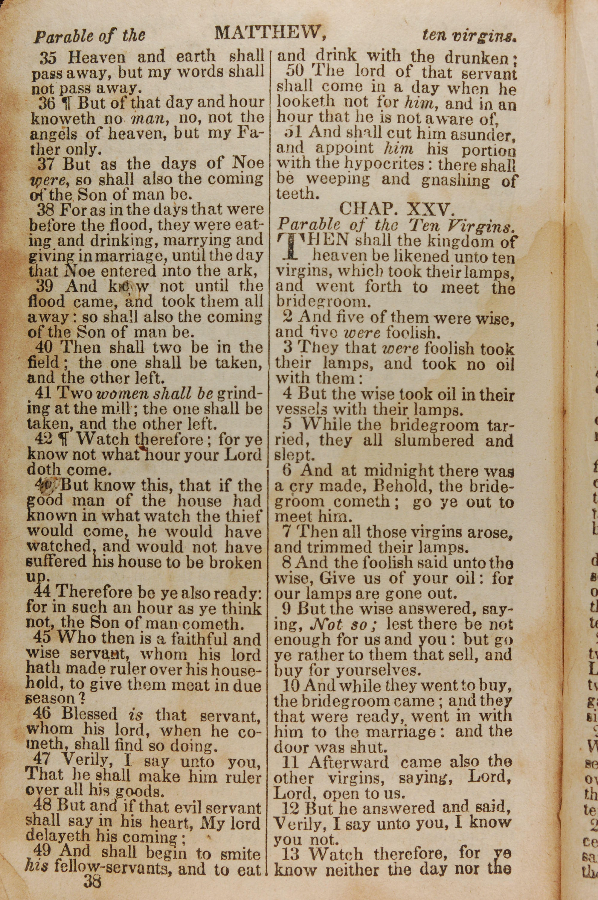 1843年The New Testament 马太福音 24 章 35 节到 25 章 13 节