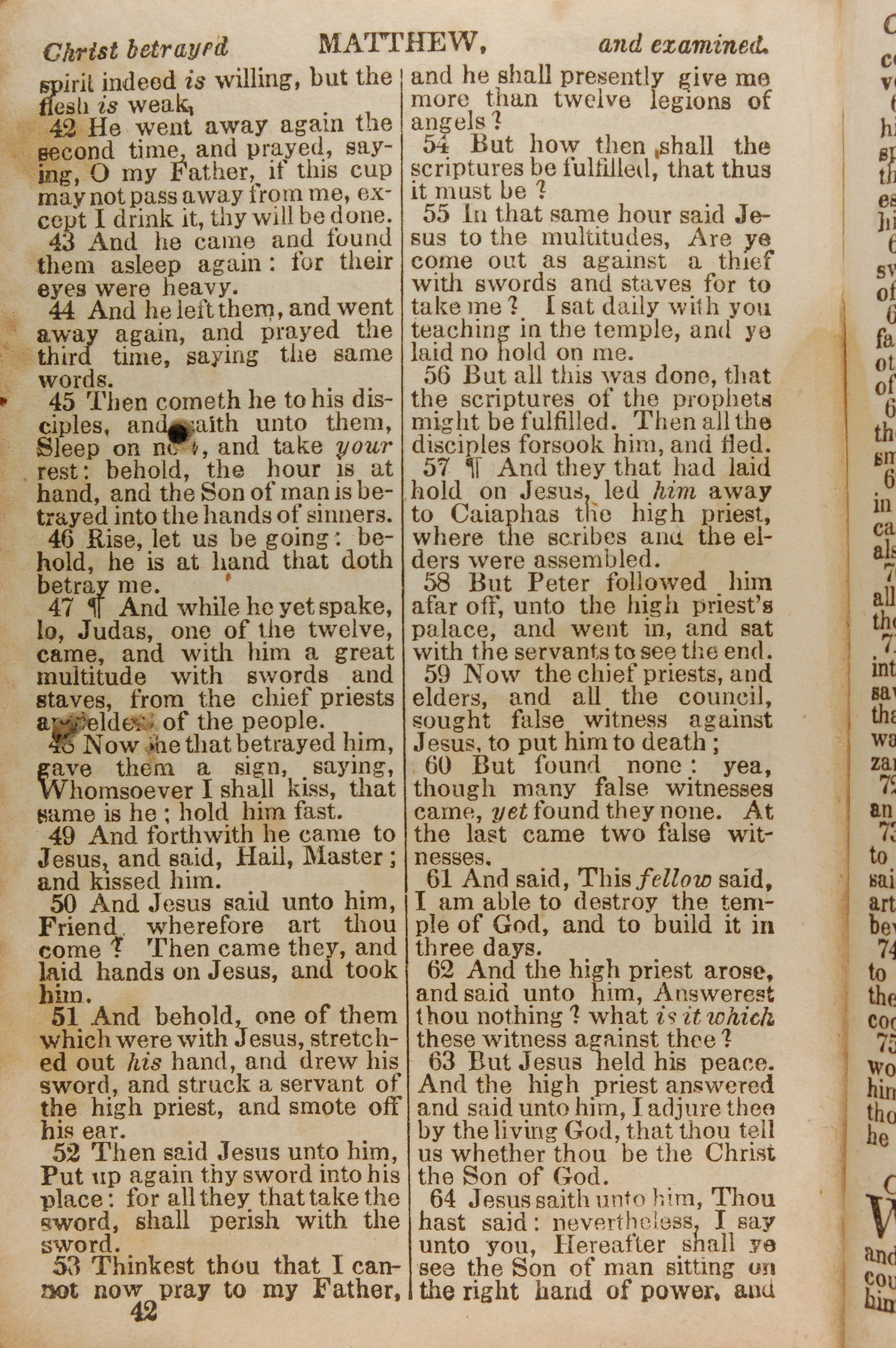 1843年The New Testament 马太福音 26 章 42 节到 26 章 64 节