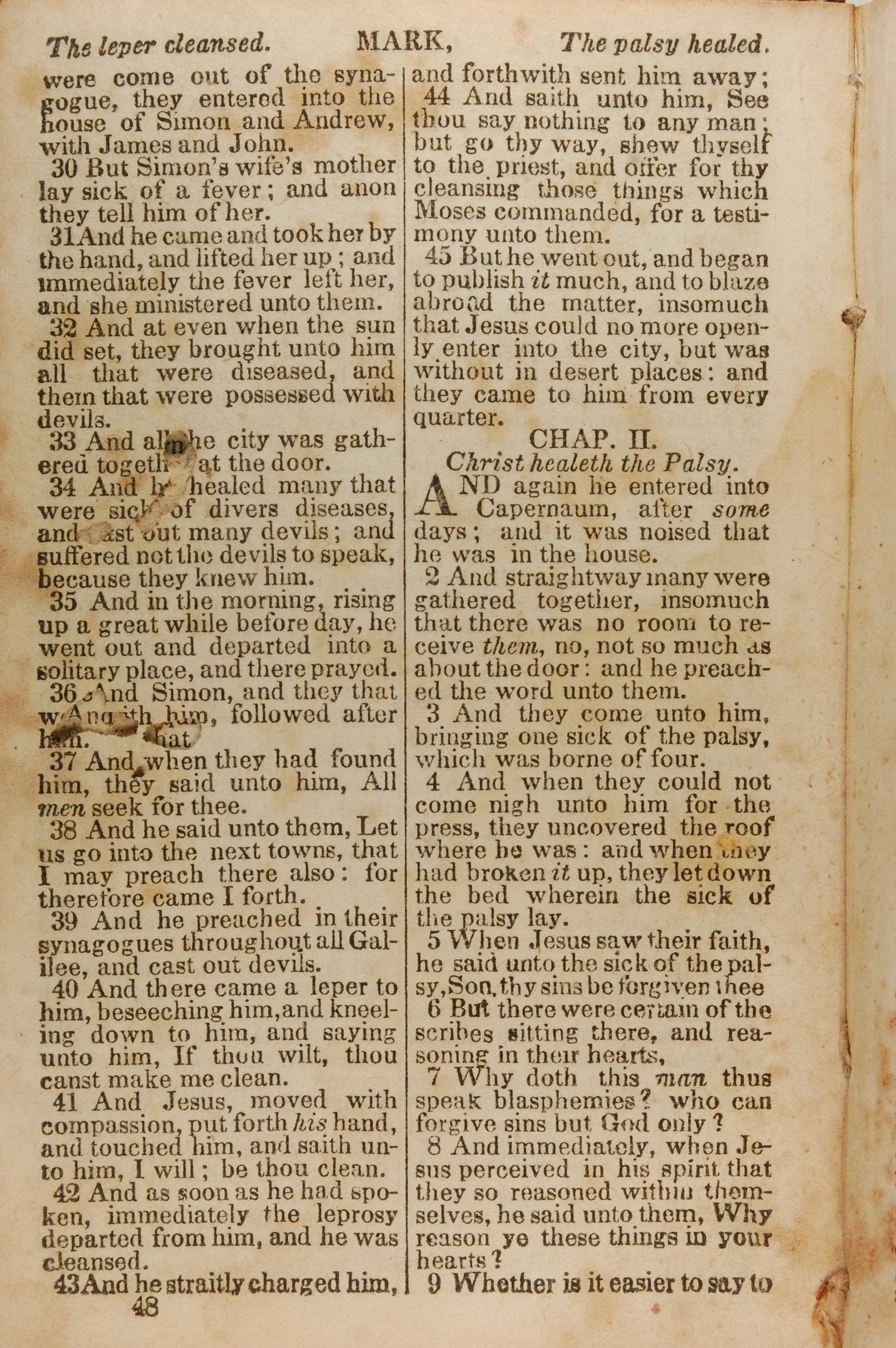1843年The New Testament 马可福音 1 章 30 节到 2 章 9 节